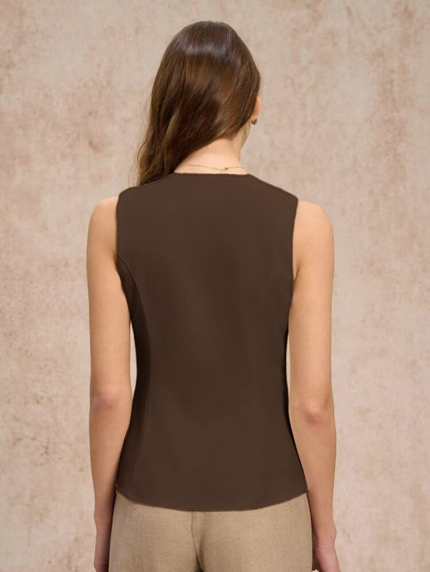여름 유럽과 미국 여성의 국경 새로운 통근 간단한 패션 버튼 단색 조끼 캐주얼 탑 라운드 넥 조끼