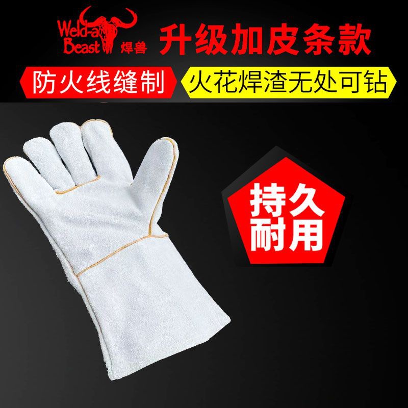 용접 장갑 긴 부드러운 가죽 전체 소 가죽 화상 방지 용접공 용접 단열 강철 공장 산업용 보호 장갑스토어 가기