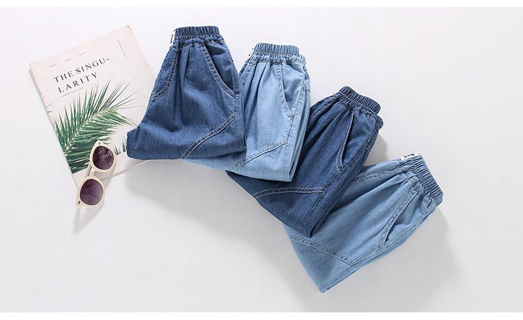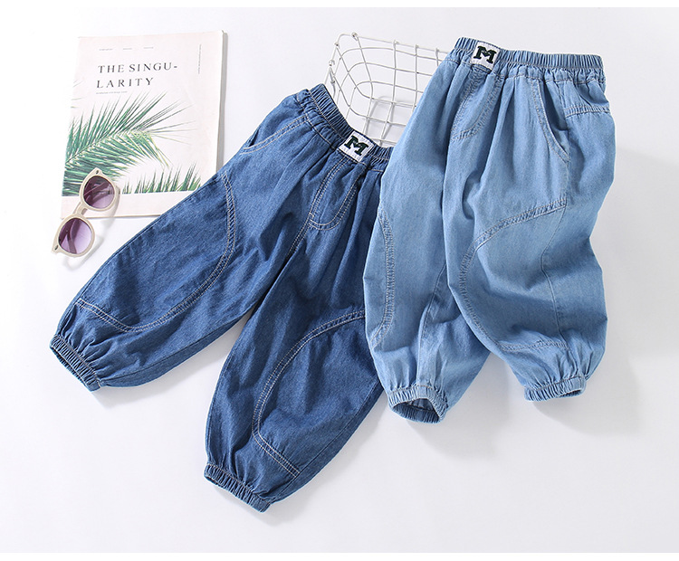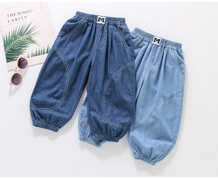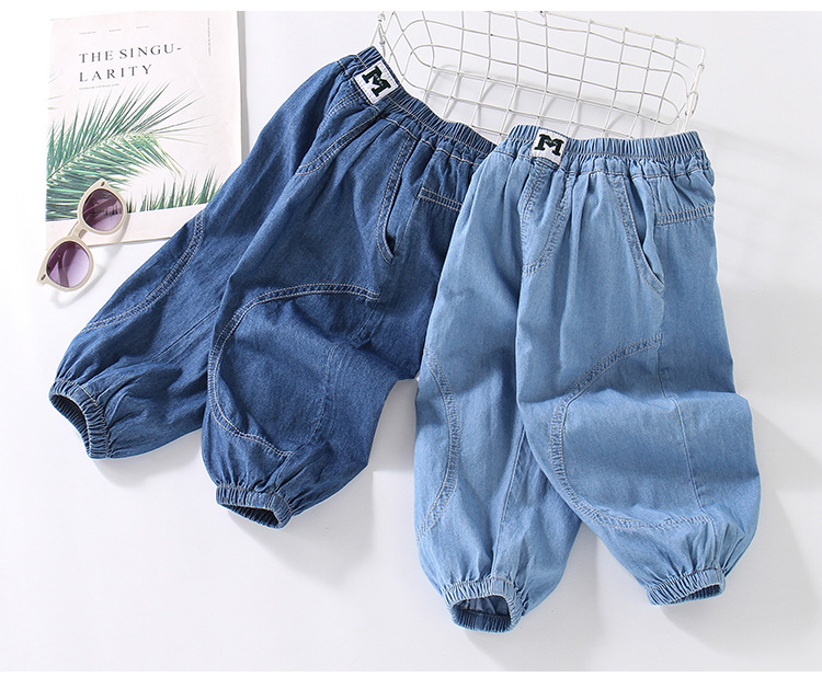 100% 코튼 여름 소년 데님 블루머스 얇은 유행 스타일 올 매치 어린이 발목 묶은 바지 소년 바지 바지스토어 가기