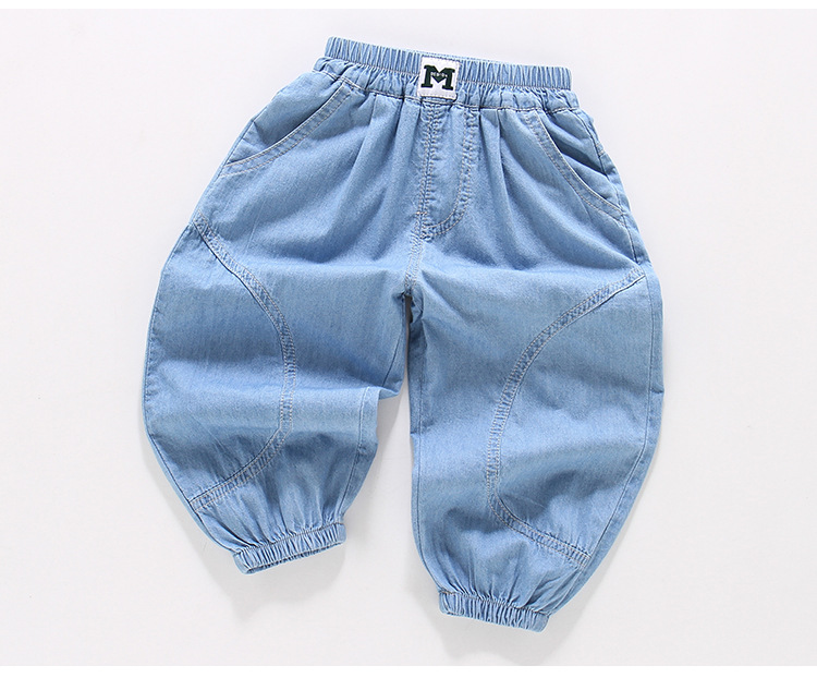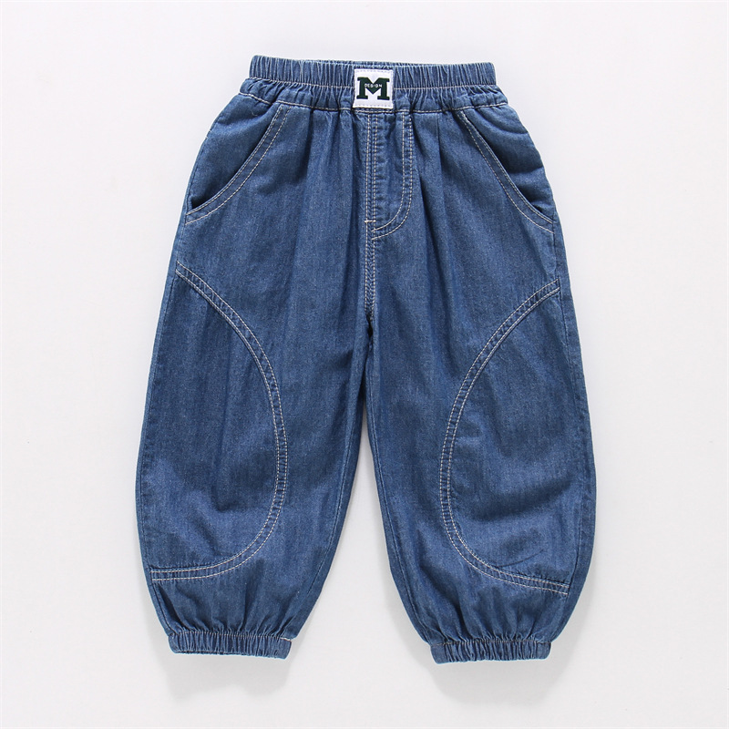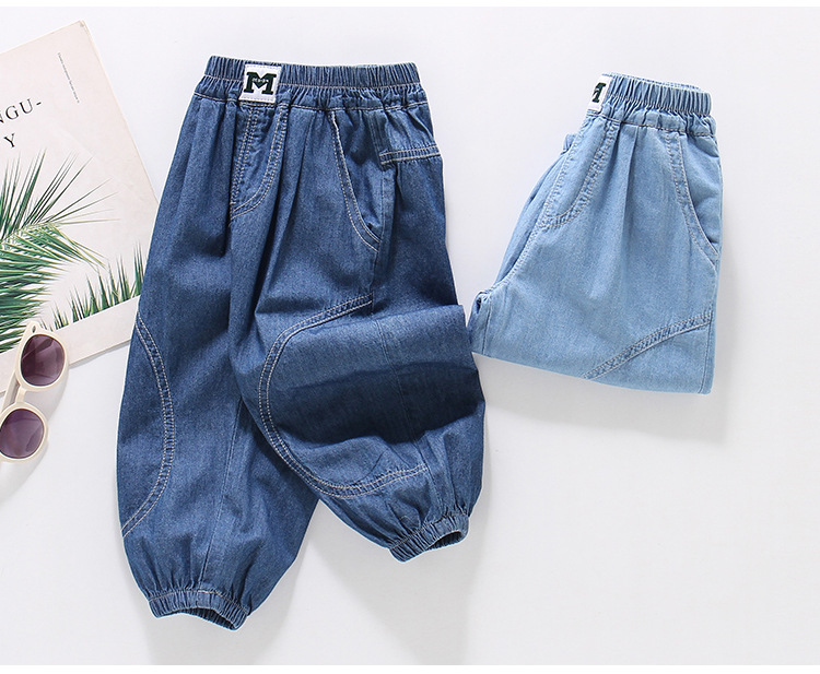 100% 코튼 여름 소년 데님 블루머스 얇은 유행 스타일 올 매치 어린이 발목 묶은 바지 소년 바지 바지