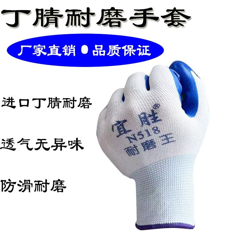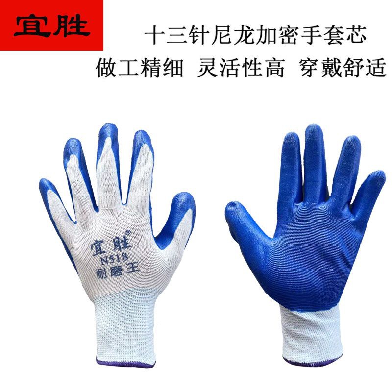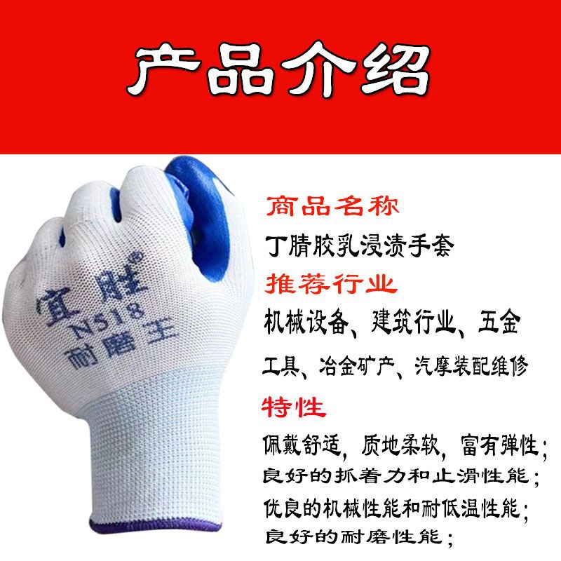 Yisheng N518 내마모성 왕 고무 장갑 건설 현장 노동 보호 장갑을 위한 파란색 두꺼운 니트릴 장갑 내마모성 및 내구성스토어 가기