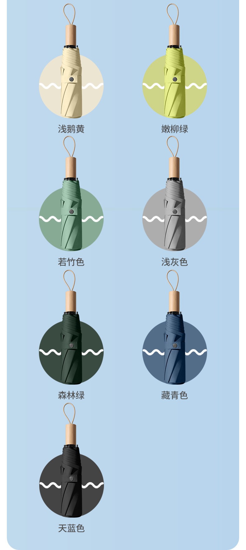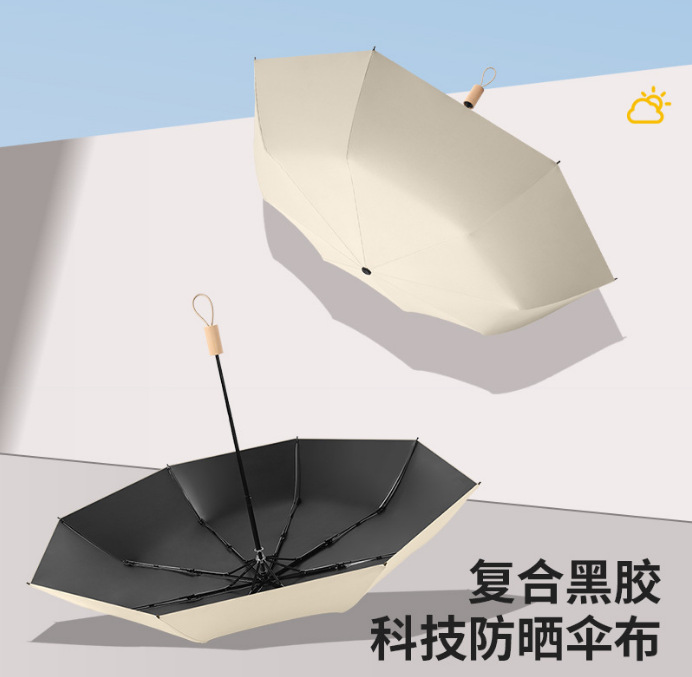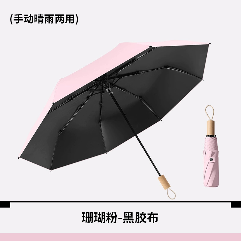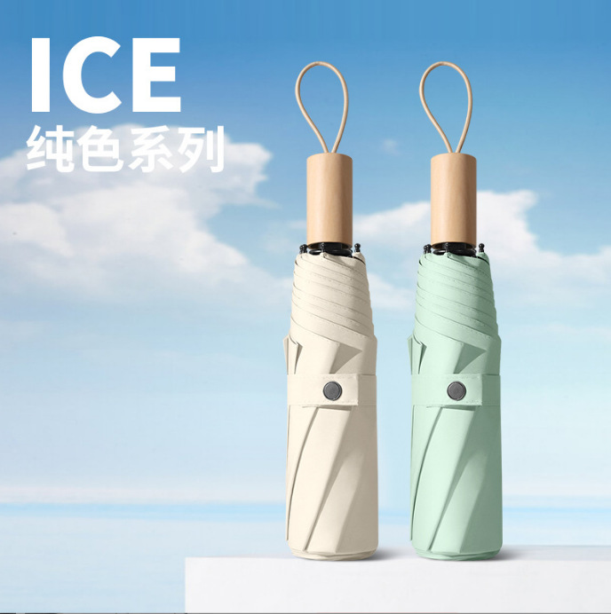 도매 재고 3 배 써니 우산 접이식 블랙 접착제 안티-UV 나무 손잡이 여성 단색 신선한 미니 우산