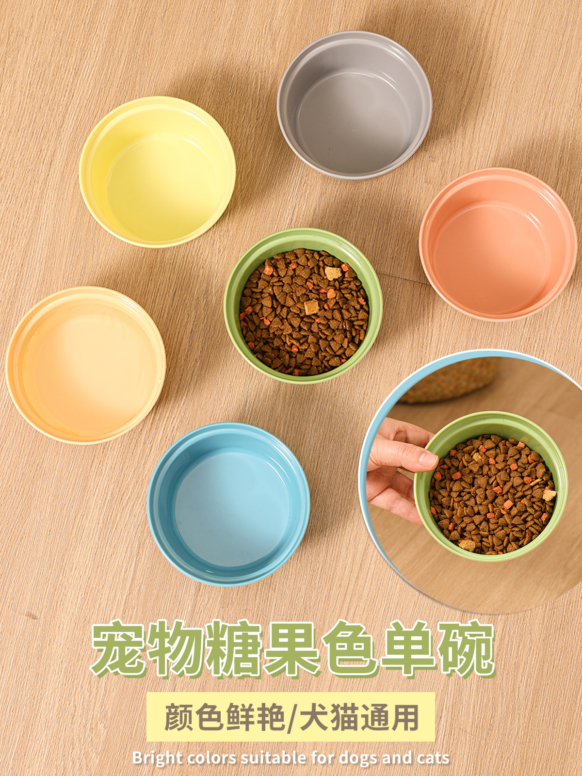 새로운 애완 동물 먹이 그릇 마크롱 컬러 플라스틱 애완 동물 둥근 그릇 고양이와 개 먹이 그릇 캔디 컬러 단일 그릇 애완 동물 식기
