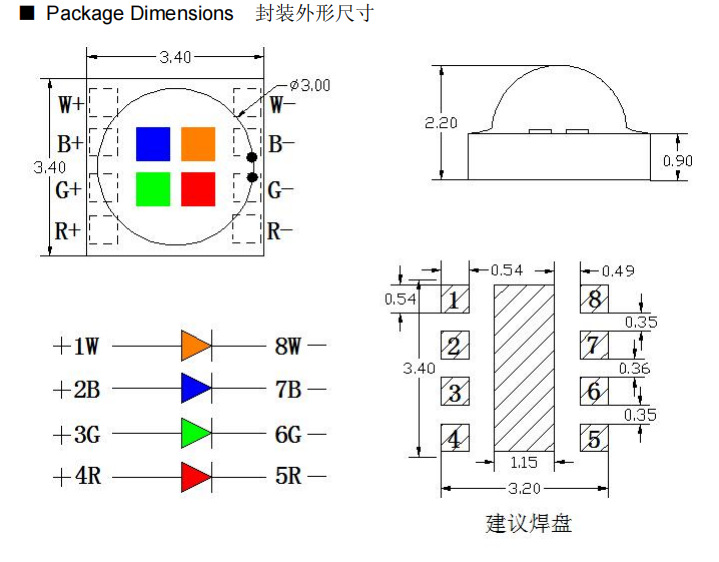 3535 RGBW 0.5W*4/1W*4陶瓷封装3535