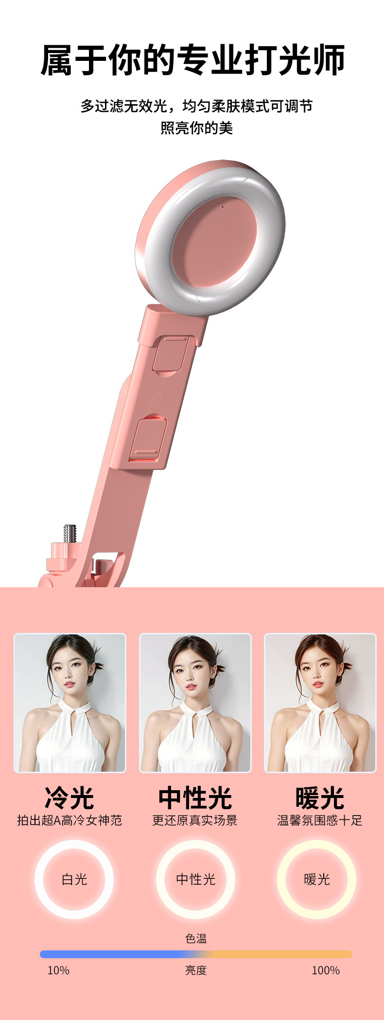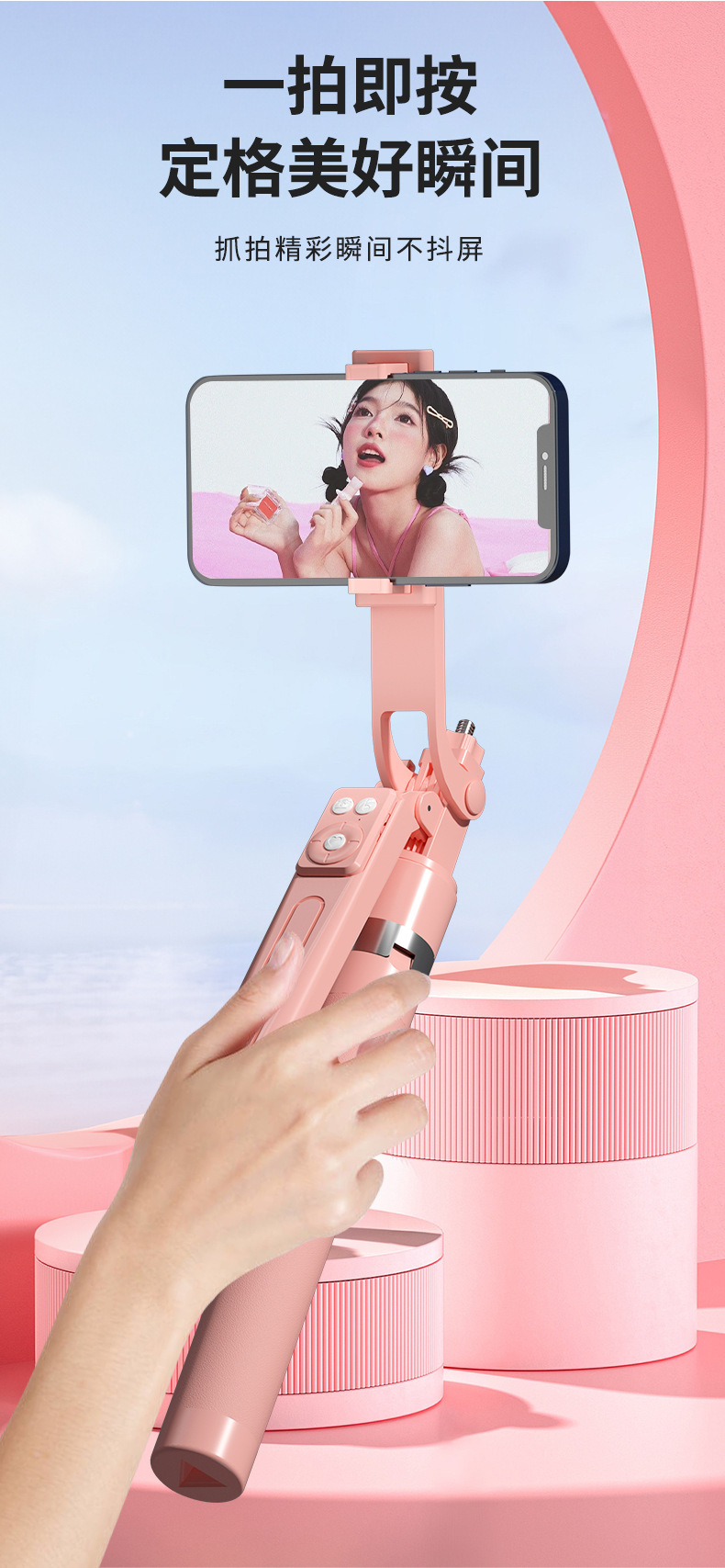 • B16 셀카봉 스탠드 [핑크] (대형 원형 램프 싱글 램프 모델)