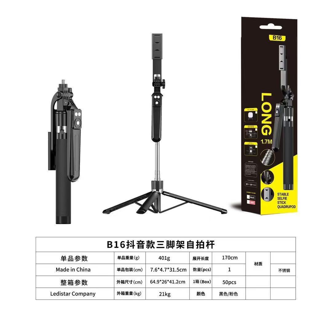 1.7m 새로운 B16 손떨림 방지 블루투스 셀카봉 홀더 충전 틱톡 원격 제어 분리형 뷰티 필 라이트
