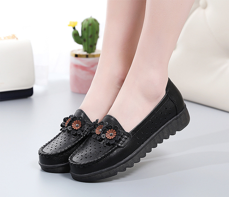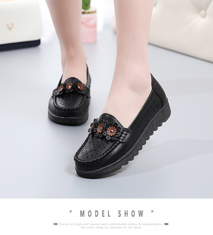 한국 스타일 여름 어머니 신발 빈 가죽 흰색 신발 여성 캐주얼 미끄럼 방지 주방 작업 통기성 구멍 신발스토어 가기