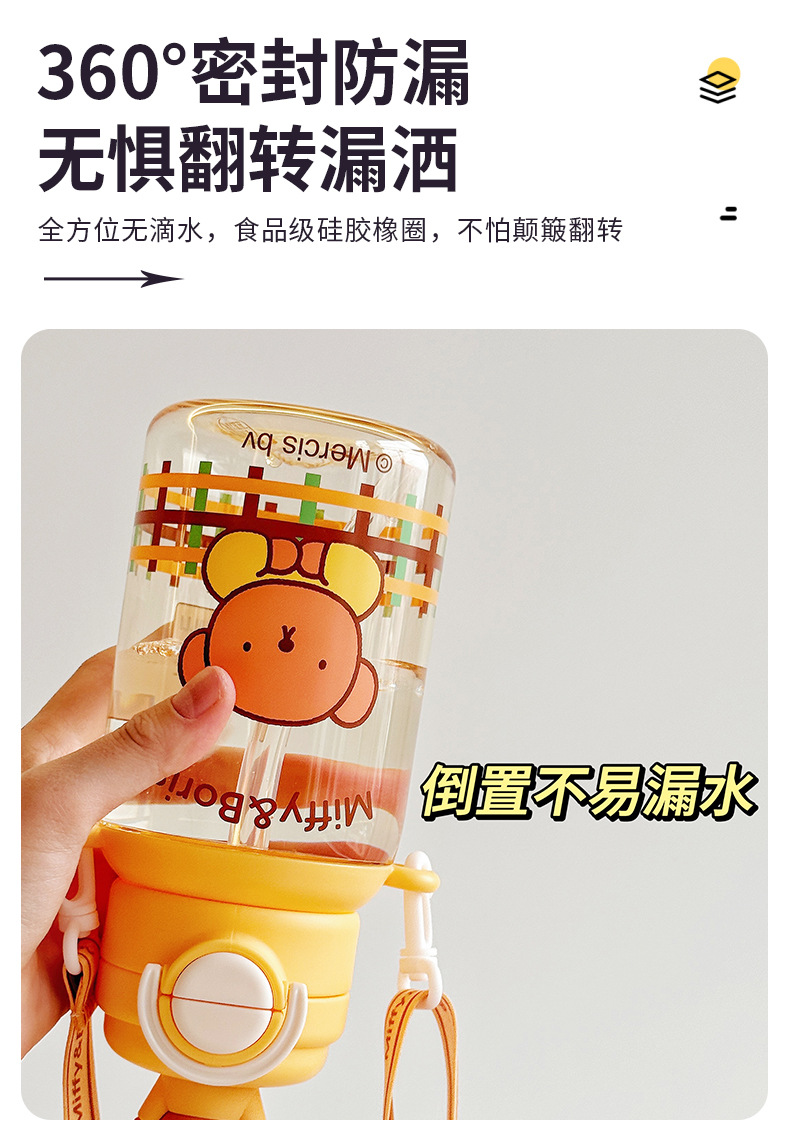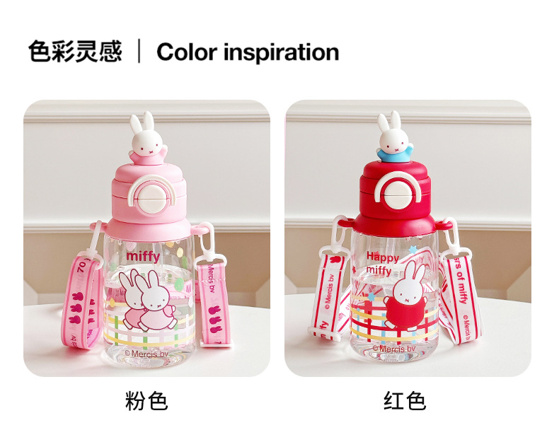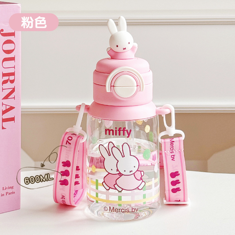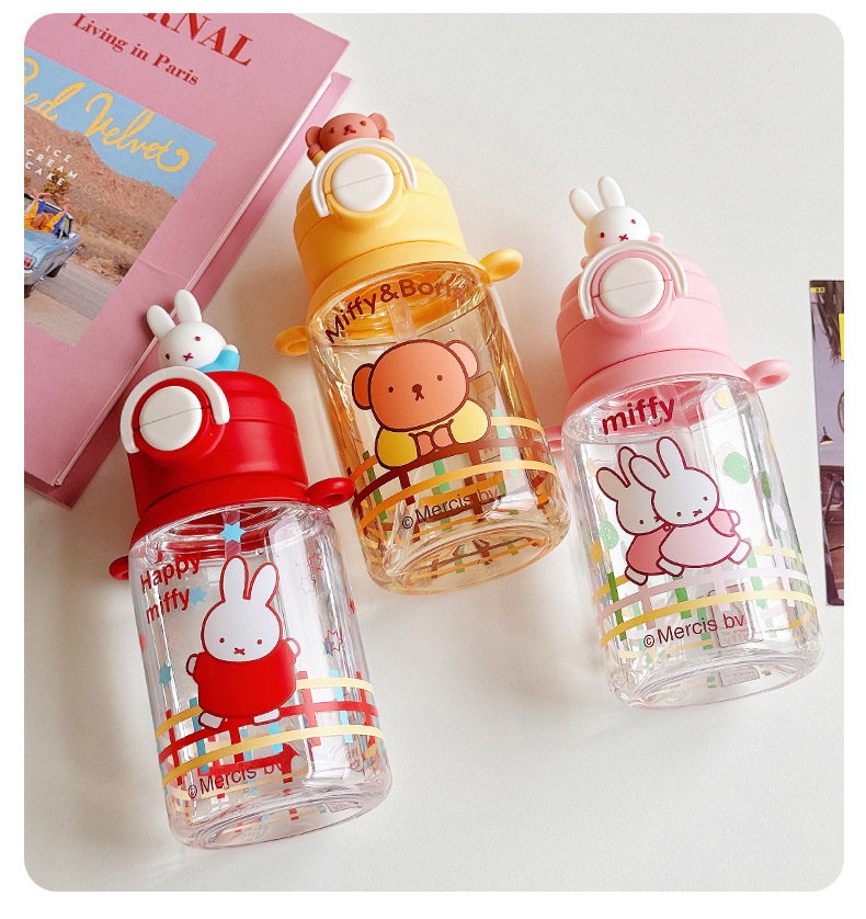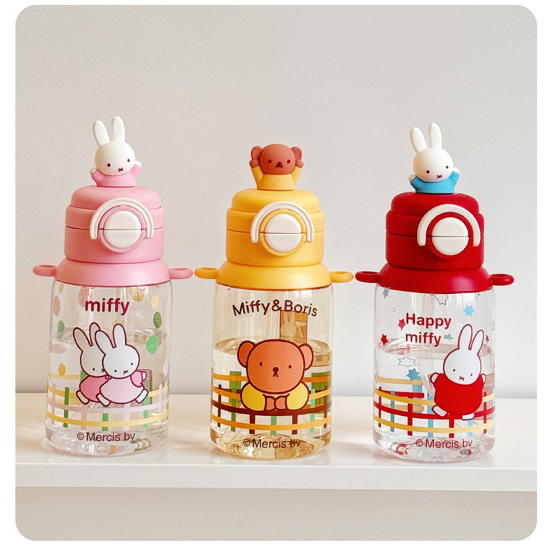 진품 미피 더블 음료 주전자 어린이 봄 나들을위한 휴대용 귀여운 만화 트리탄 컵 흡입 튜브 컵 소녀스토어 가기