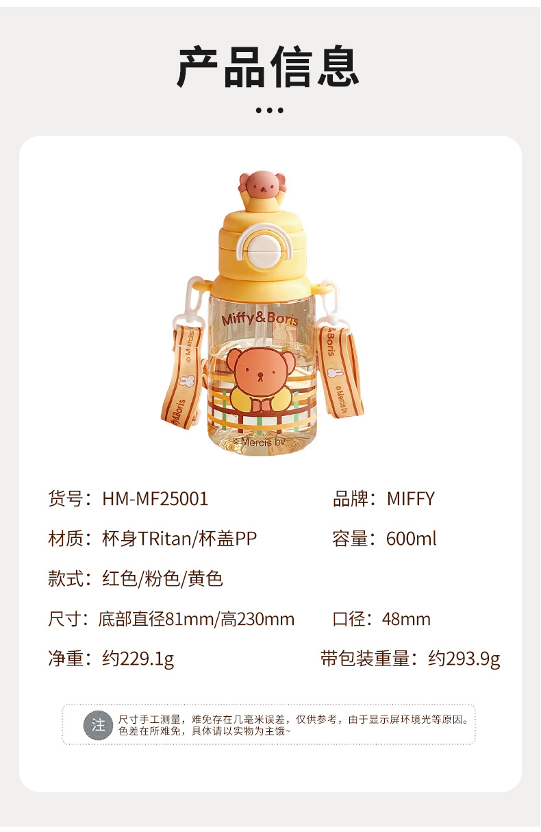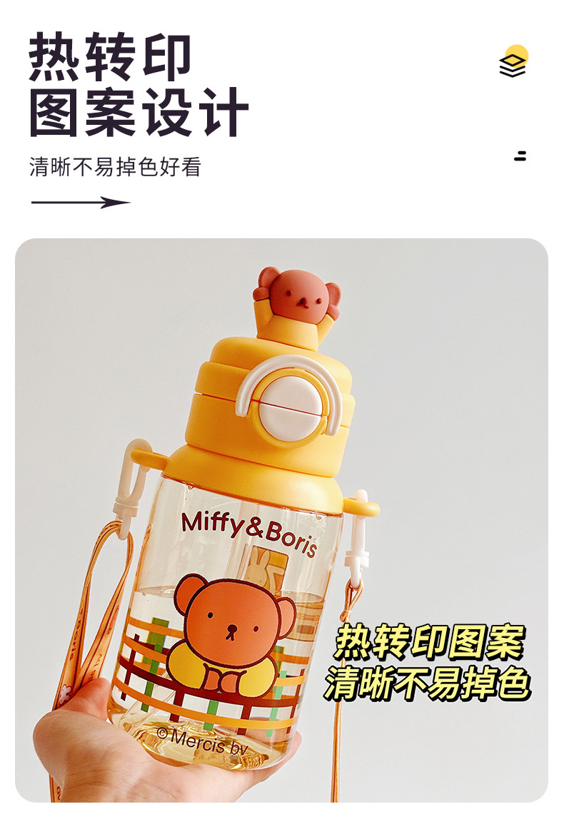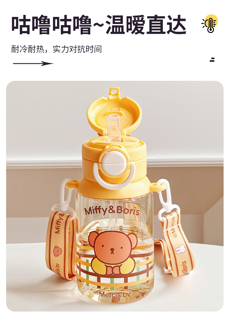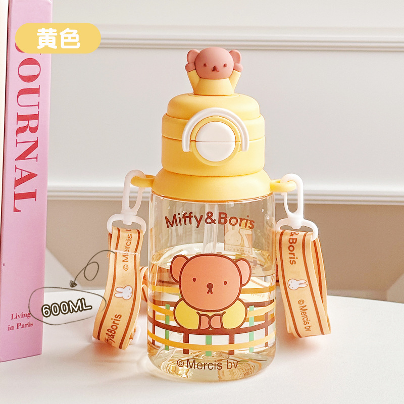 진품 미피 더블 음료 주전자 어린이 봄 나들을위한 휴대용 귀여운 만화 트리탄 컵 흡입 튜브 컵 소녀스토어 가기