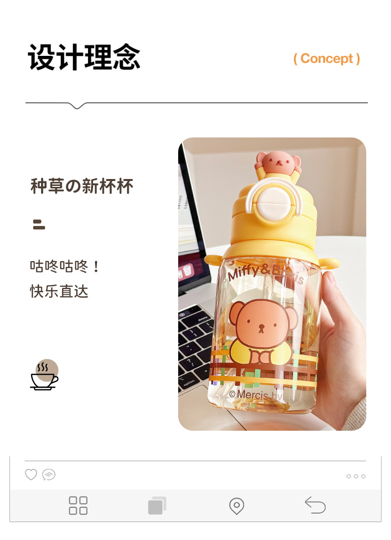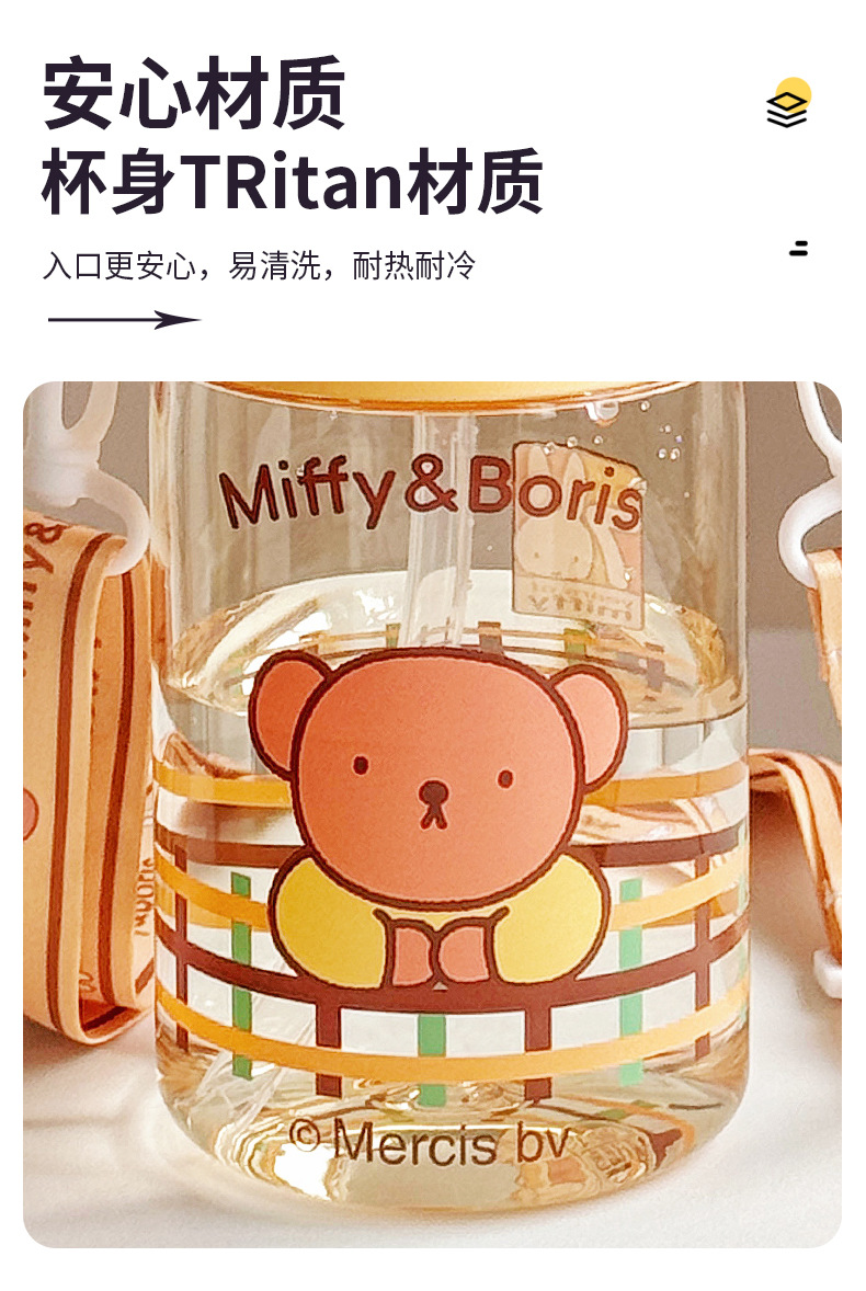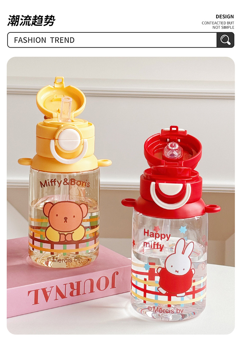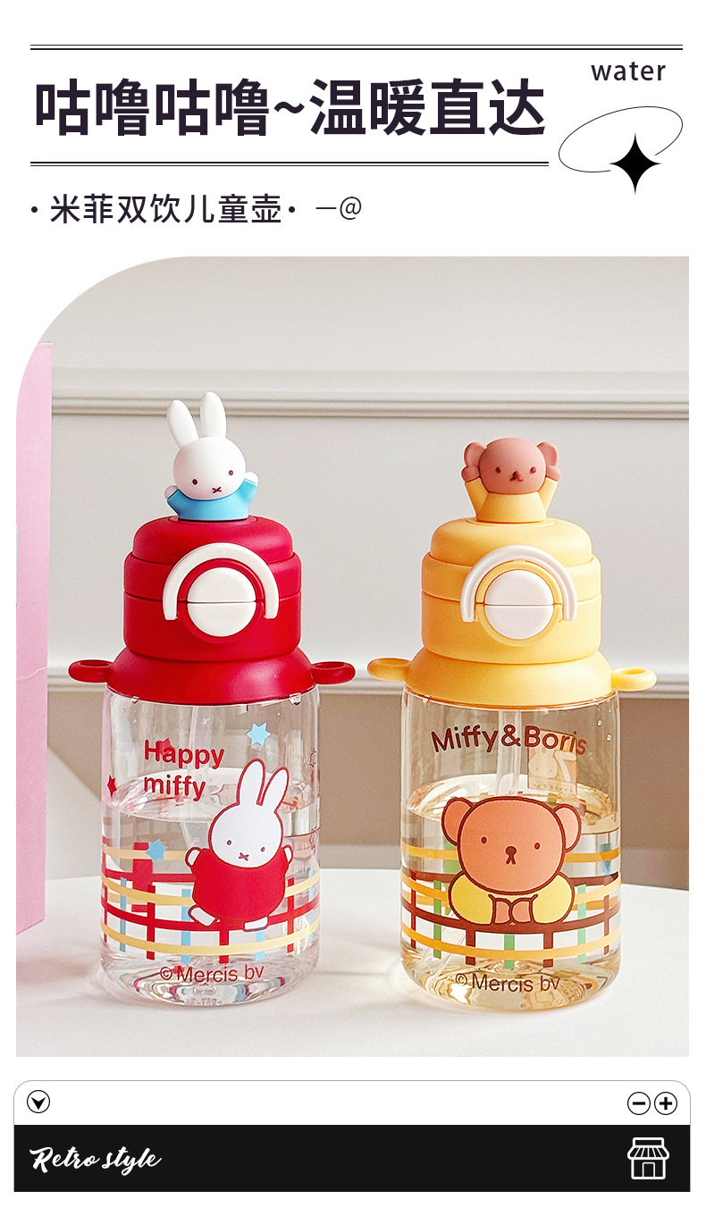 진품 미피 더블 음료 주전자 어린이 봄 나들을위한 휴대용 귀여운 만화 트리탄 컵 흡입 튜브 컵 소녀