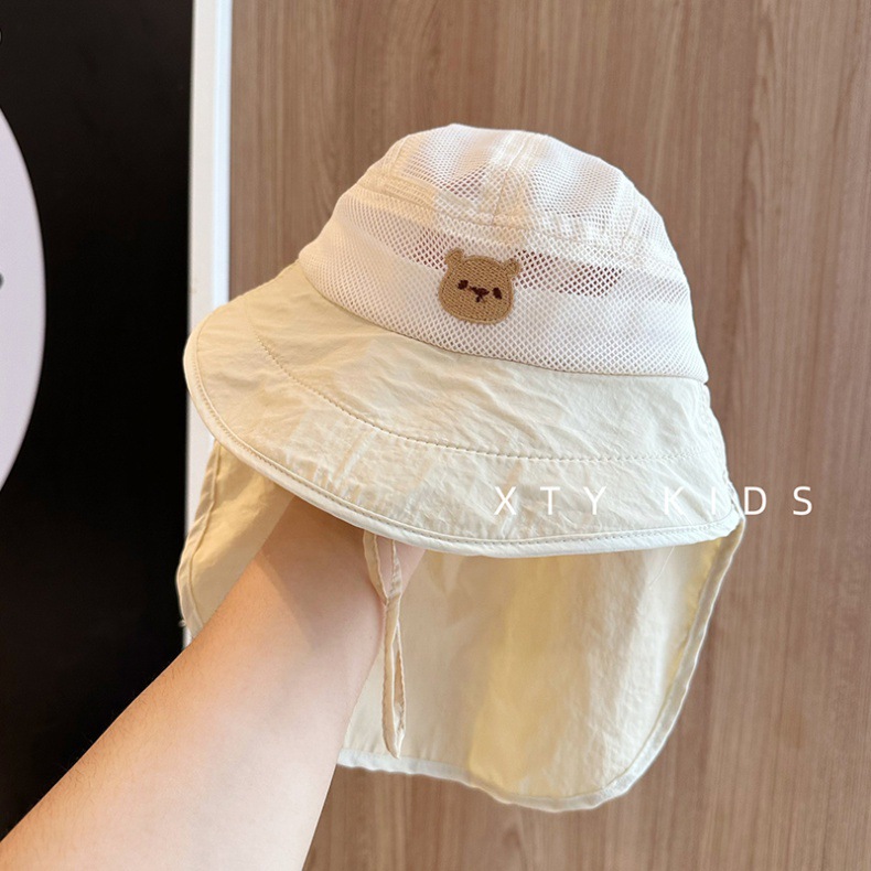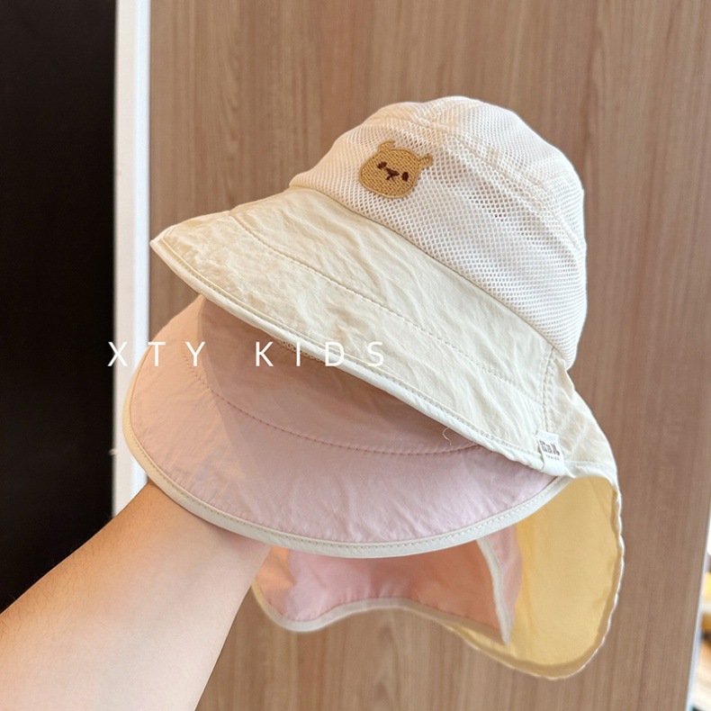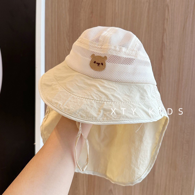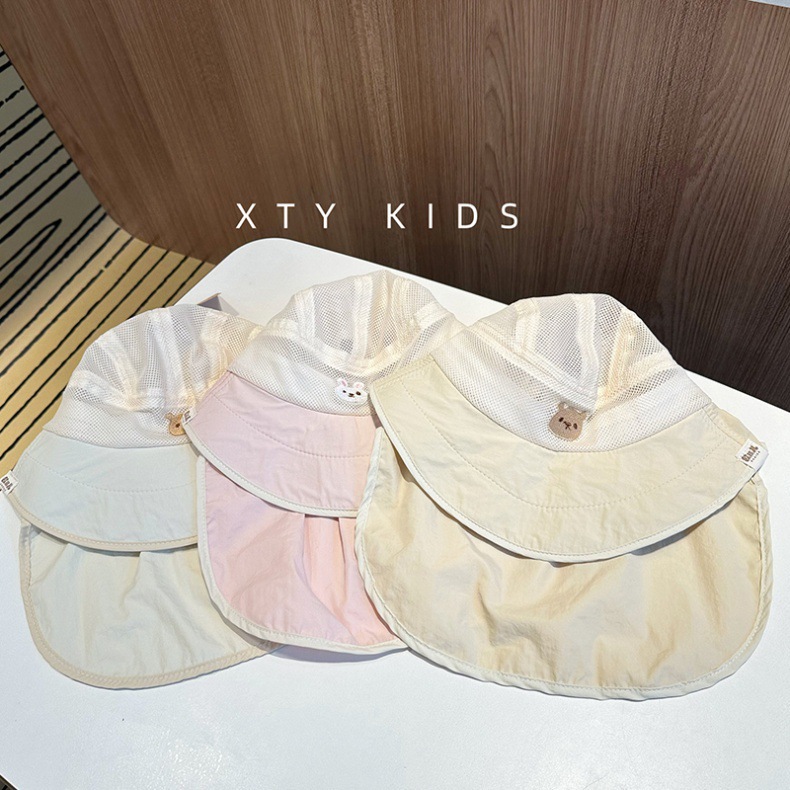 어린이 모자 여름 통기성 목도리 목 보호 귀여운 곰 색상 일치 큰 처마 선 스크린 태양 모자 아기 태양 모자스토어 가기