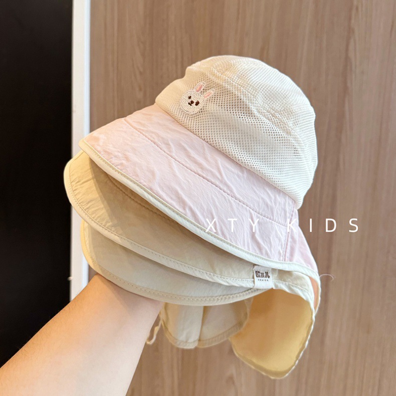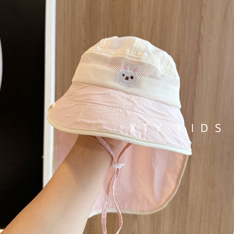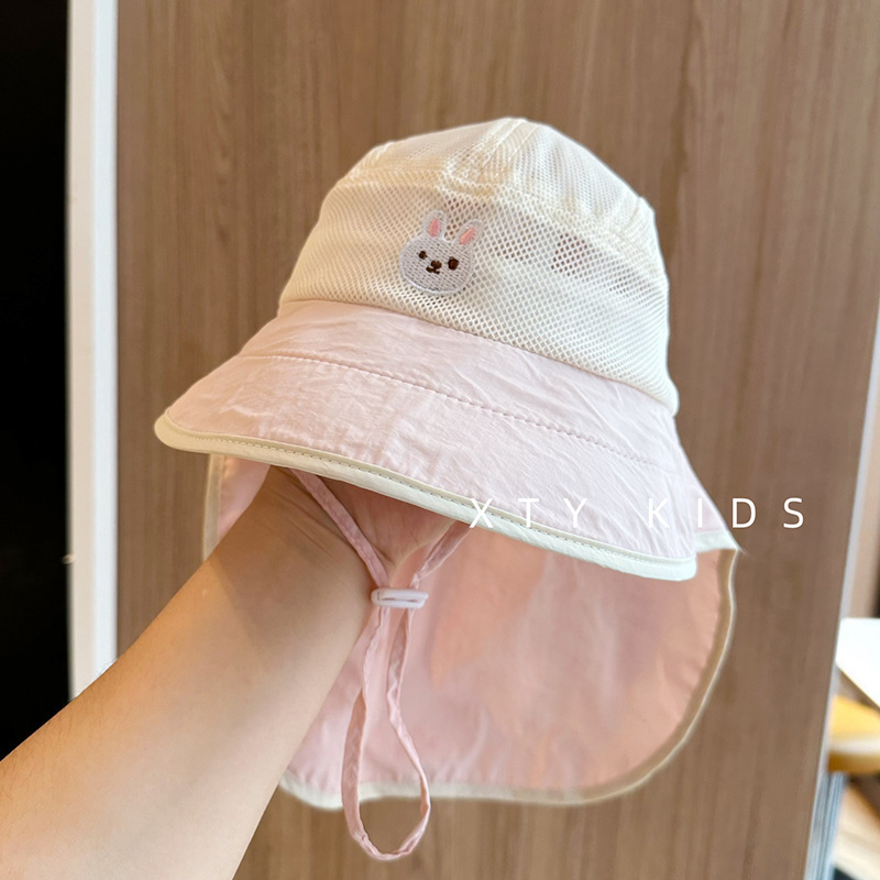 어린이 모자 여름 통기성 목도리 목 보호 귀여운 곰 색상 일치 큰 처마 선 스크린 태양 모자 아기 태양 모자