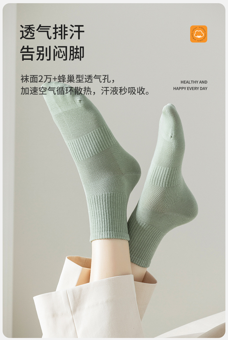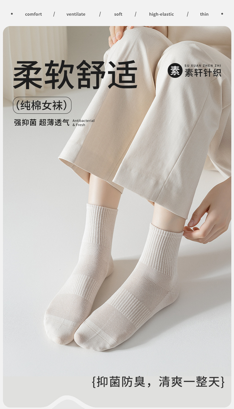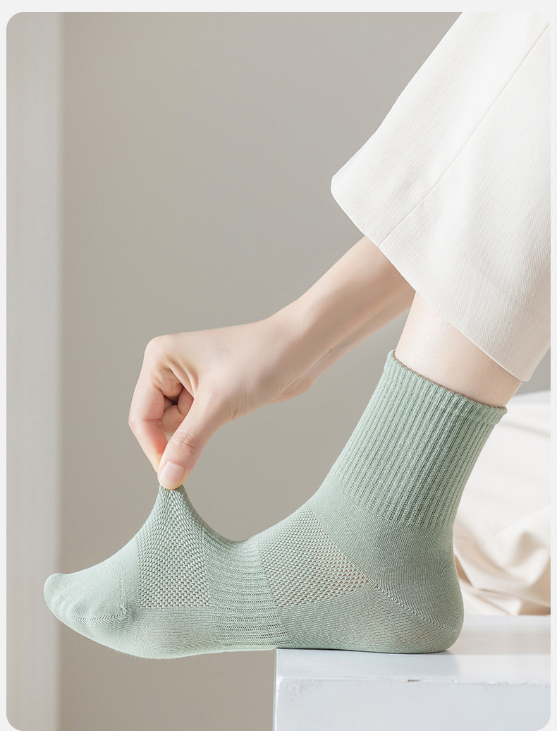 퓨어 코튼 양말 여성 여름 메쉬 라이트 스포츠 허리 미드 양말 안티 필링 본리스 양말 통기성 솔리드 컬러 올 매치스토어 가기