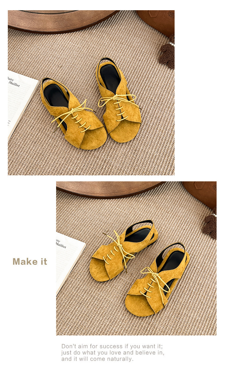 유럽과 미국의 로마 레이스 업 라운드 토 샌들 여름 새로운 두꺼운 슬립 온 라운드 토 오픈 토 프론트 레이스 업 비치 샌들