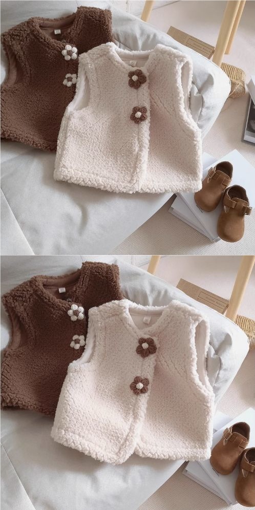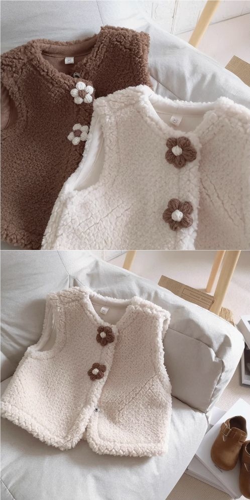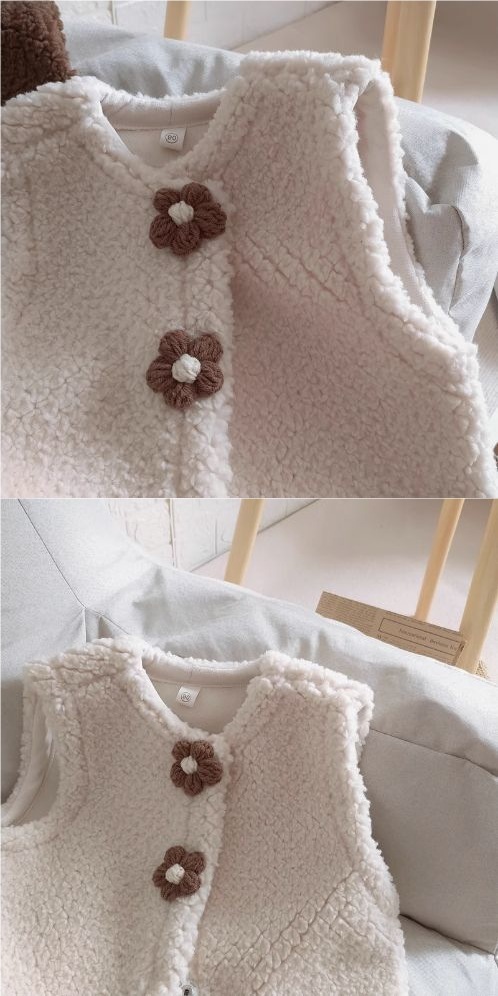 한국 아동복 2025 새로운 가을 겨울 스타일 여아용 꽃 램스울 조끼 아기 소녀 두꺼운 모피 트렌드스토어 가기