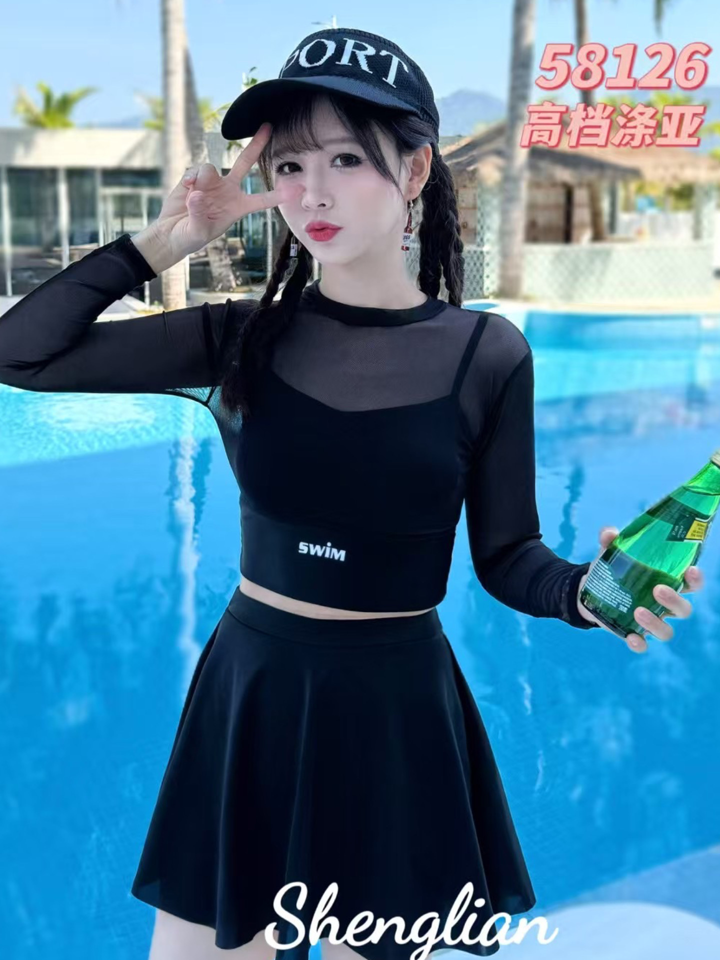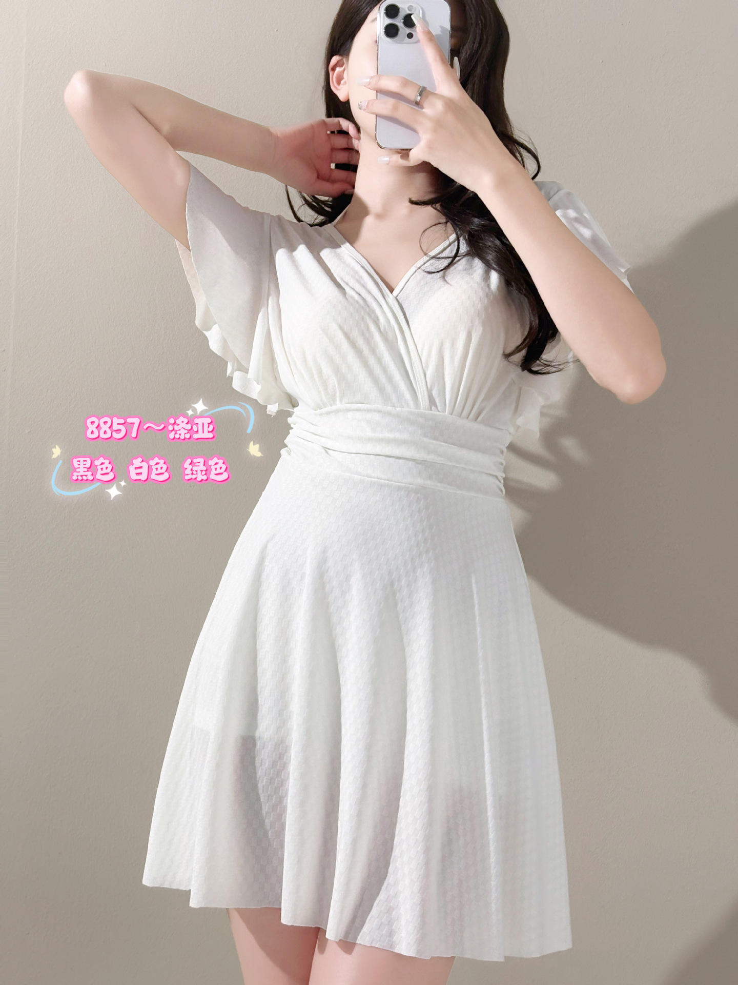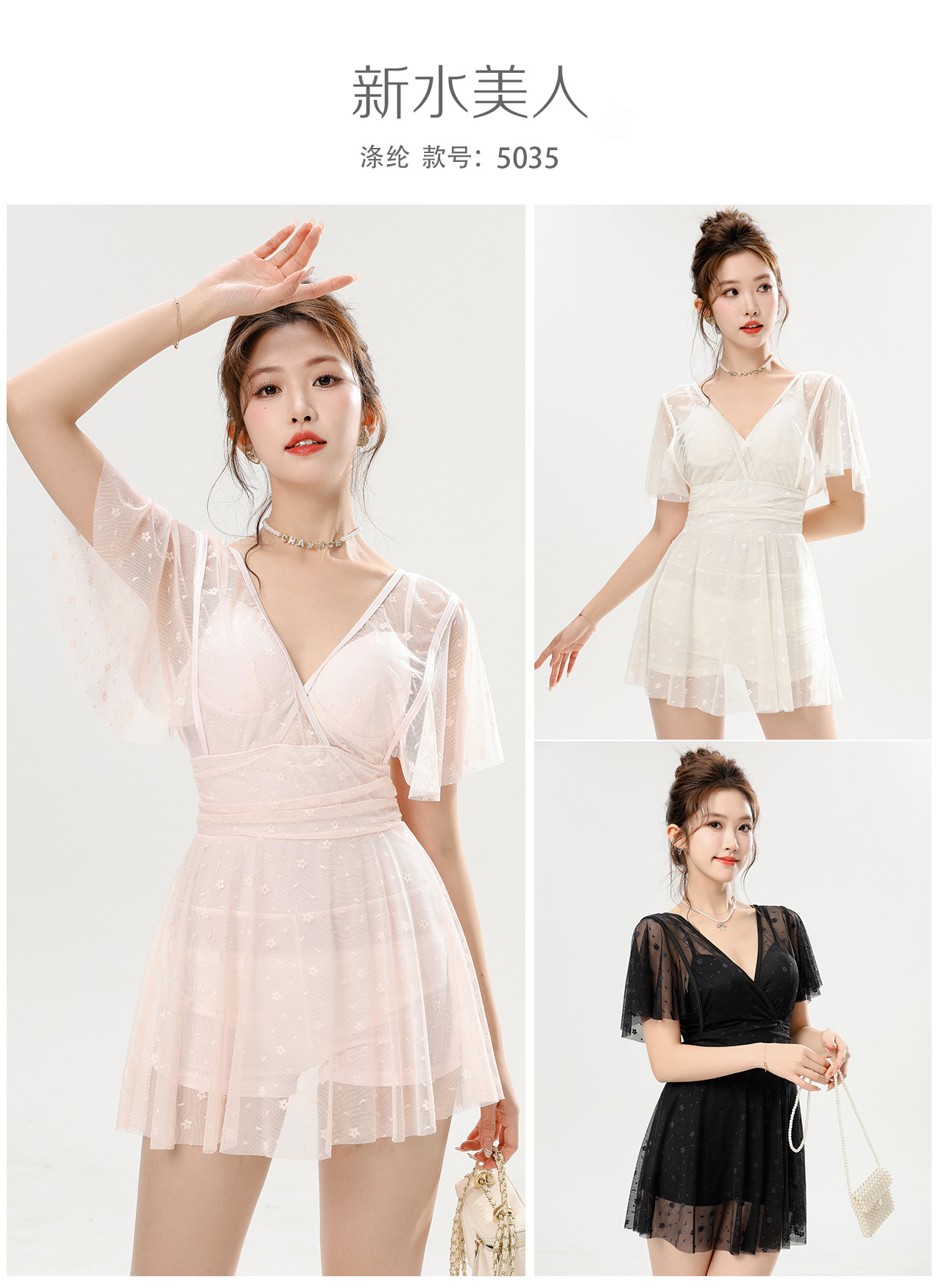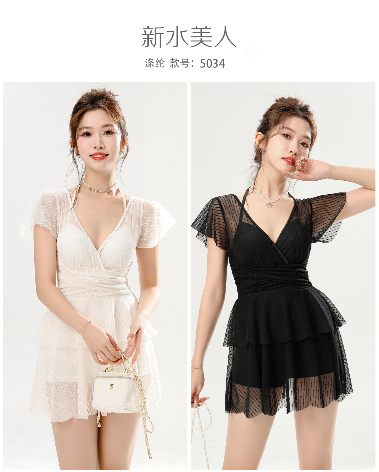 2025 여성 수영복 보수적으로 슬림 배꼽 장식 스커트 수영복 학생 비치 온천 수영복 배치