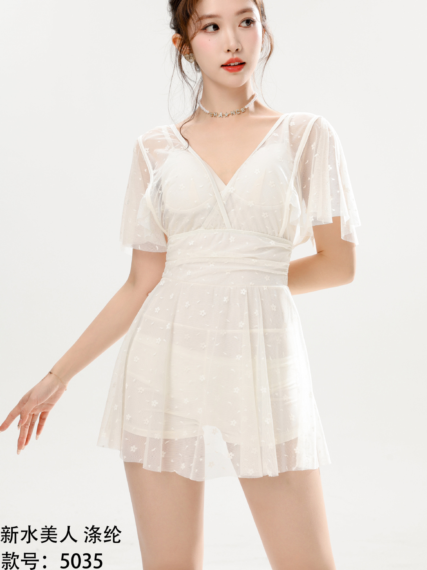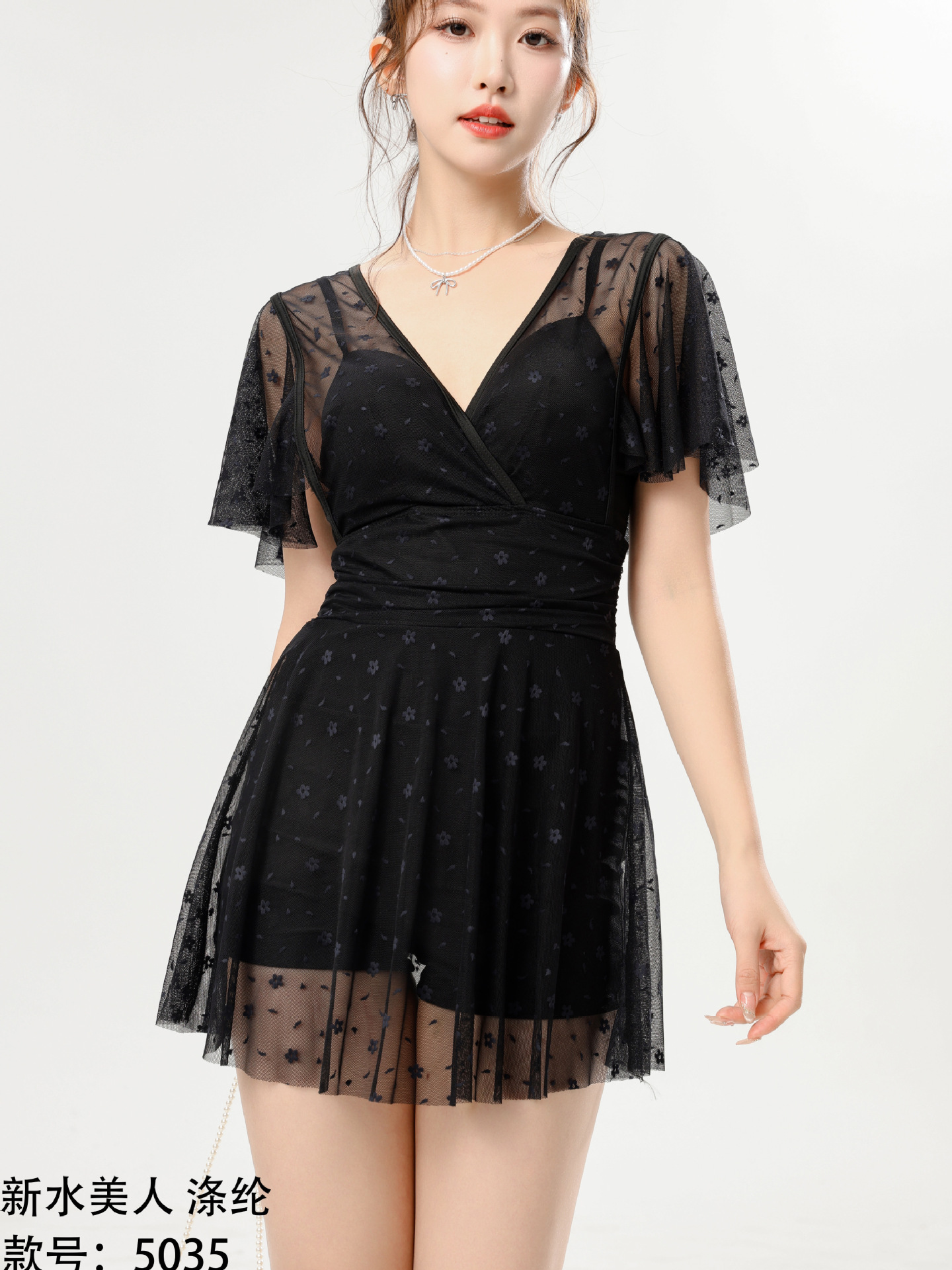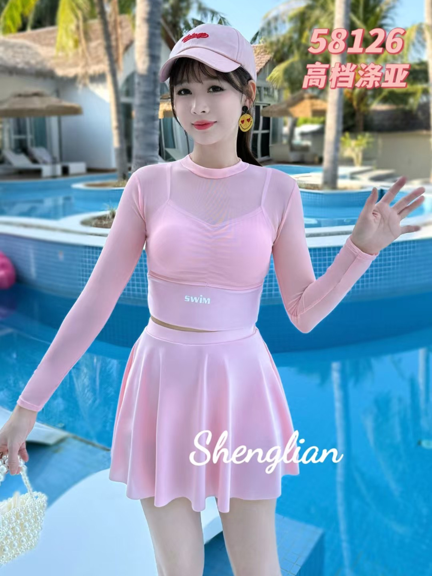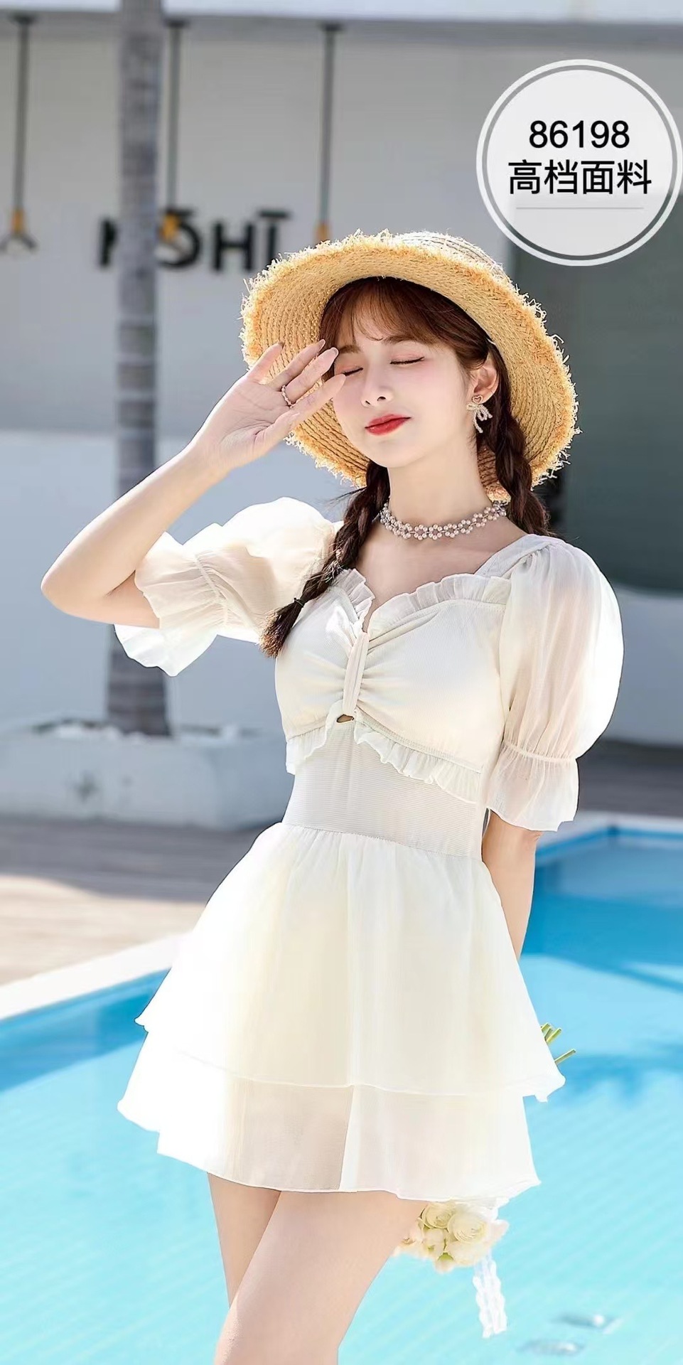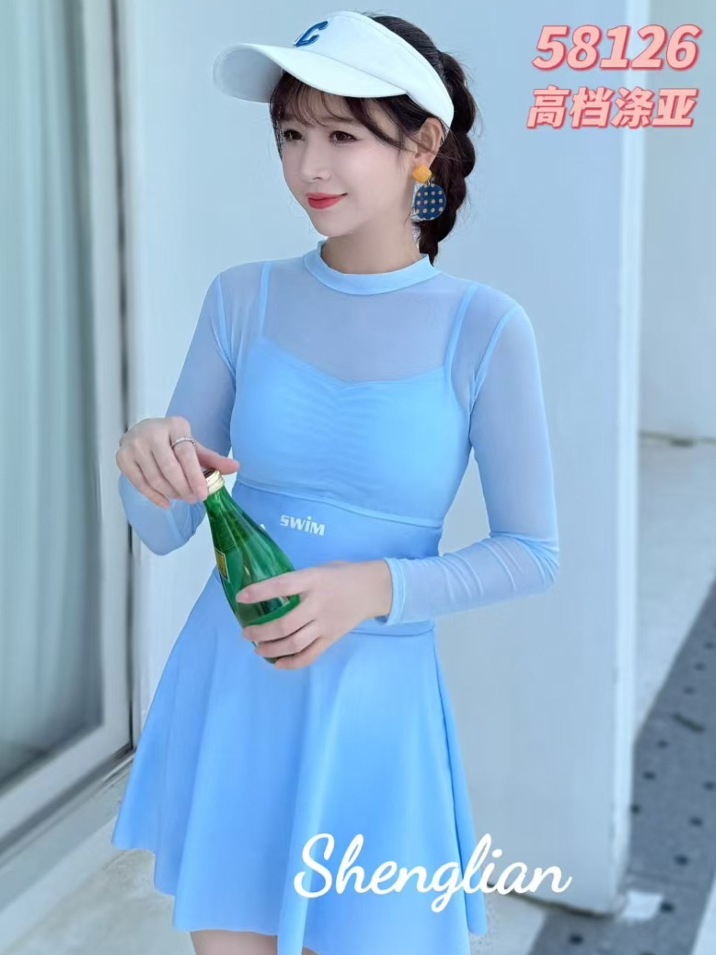 2025 여성 수영복 보수적으로 슬림 배꼽 장식 스커트 수영복 학생 비치 온천 수영복 배치