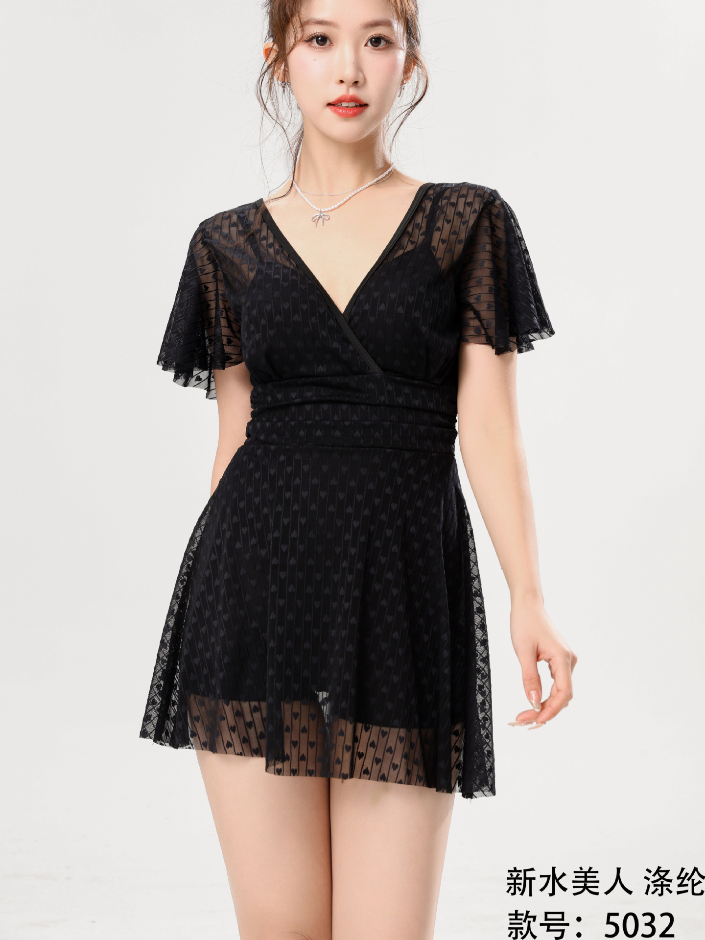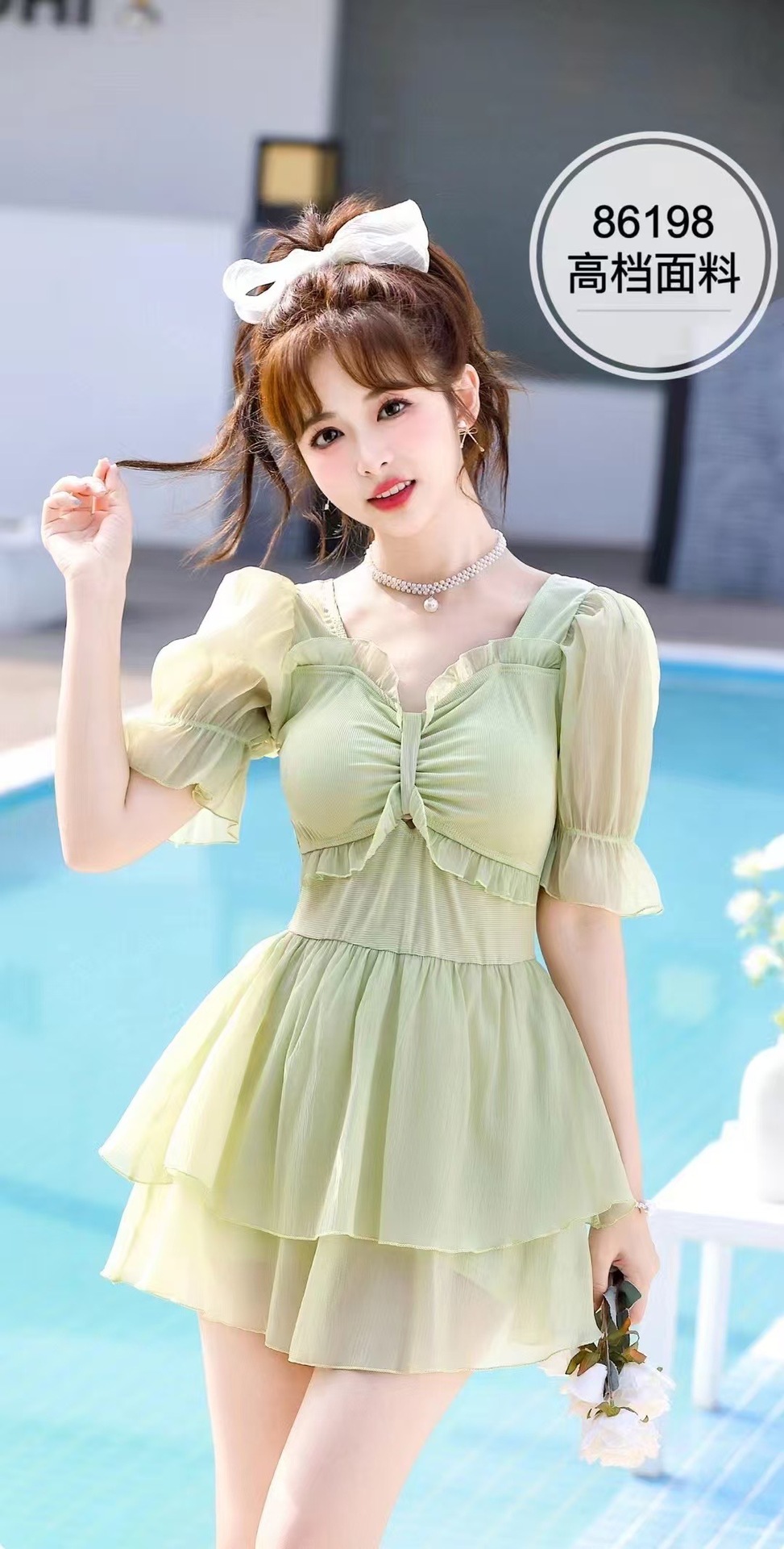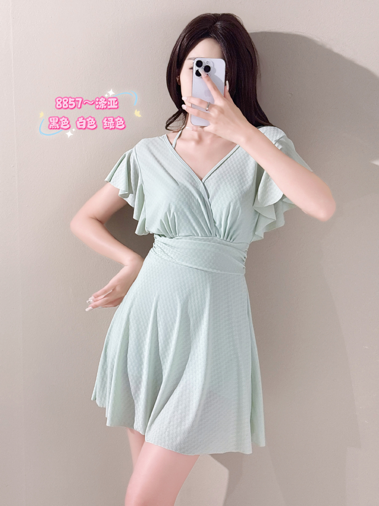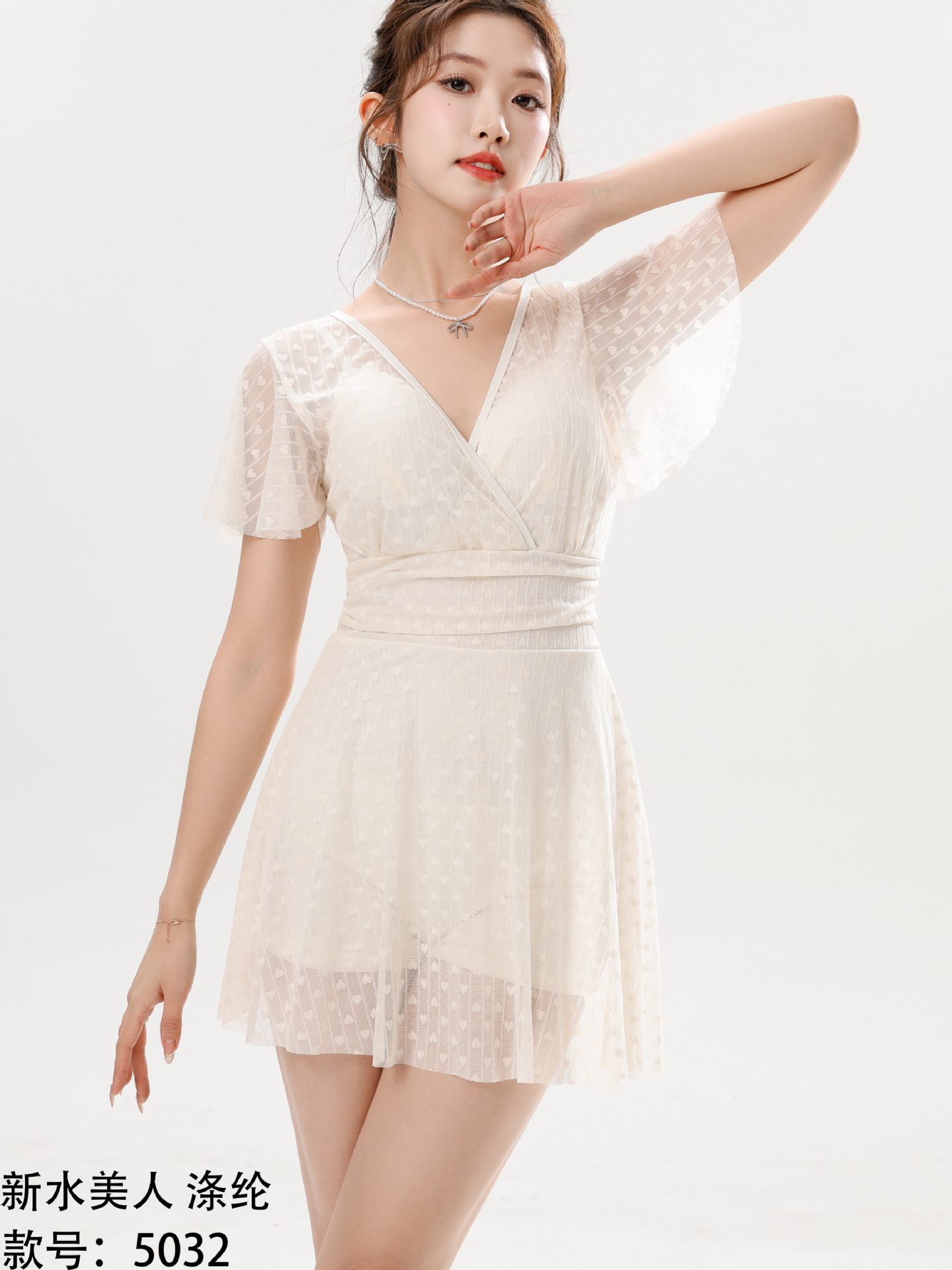 2025 여성 수영복 보수적으로 슬림 배꼽 장식 스커트 수영복 학생 비치 온천 수영복 배치