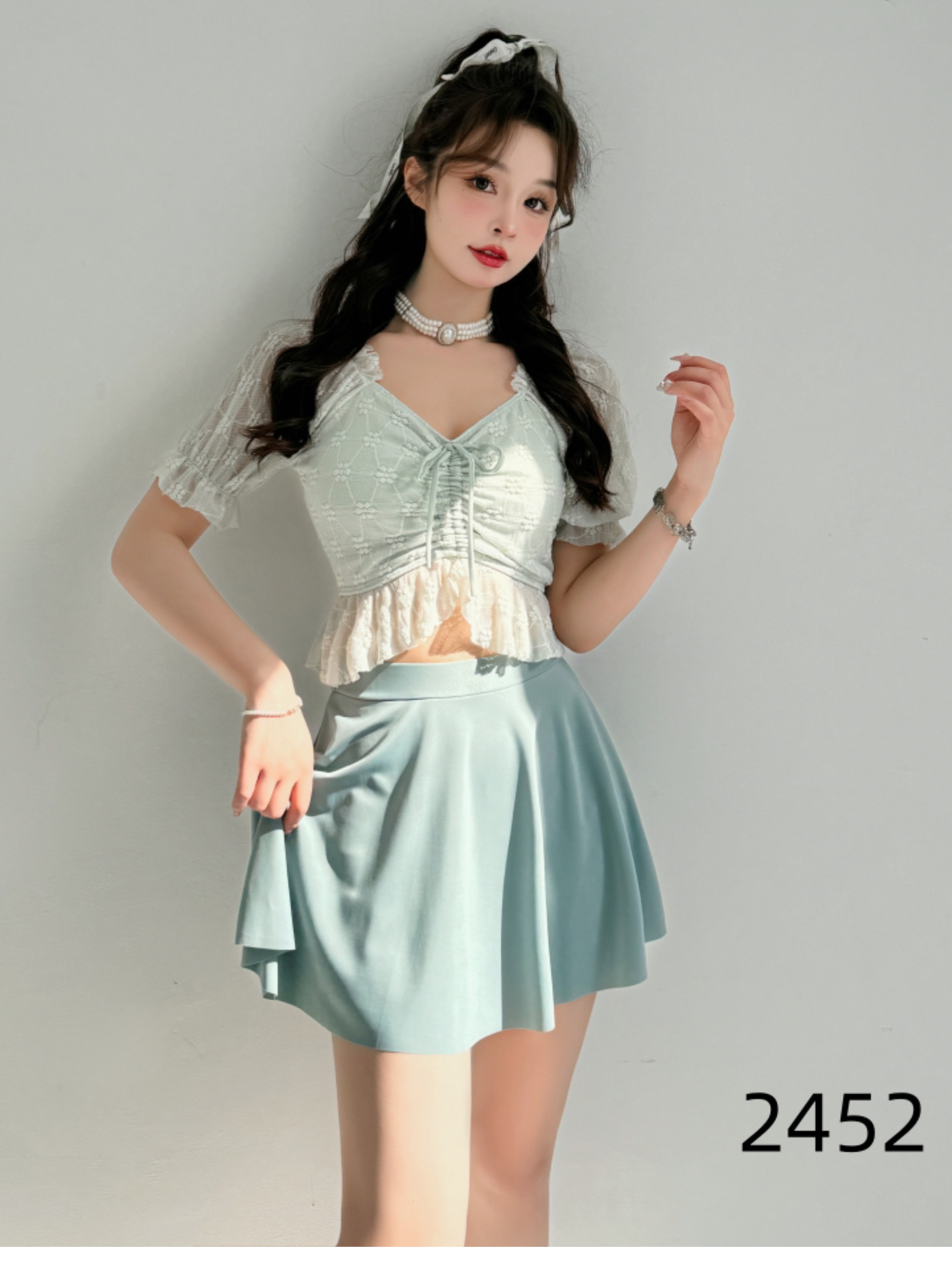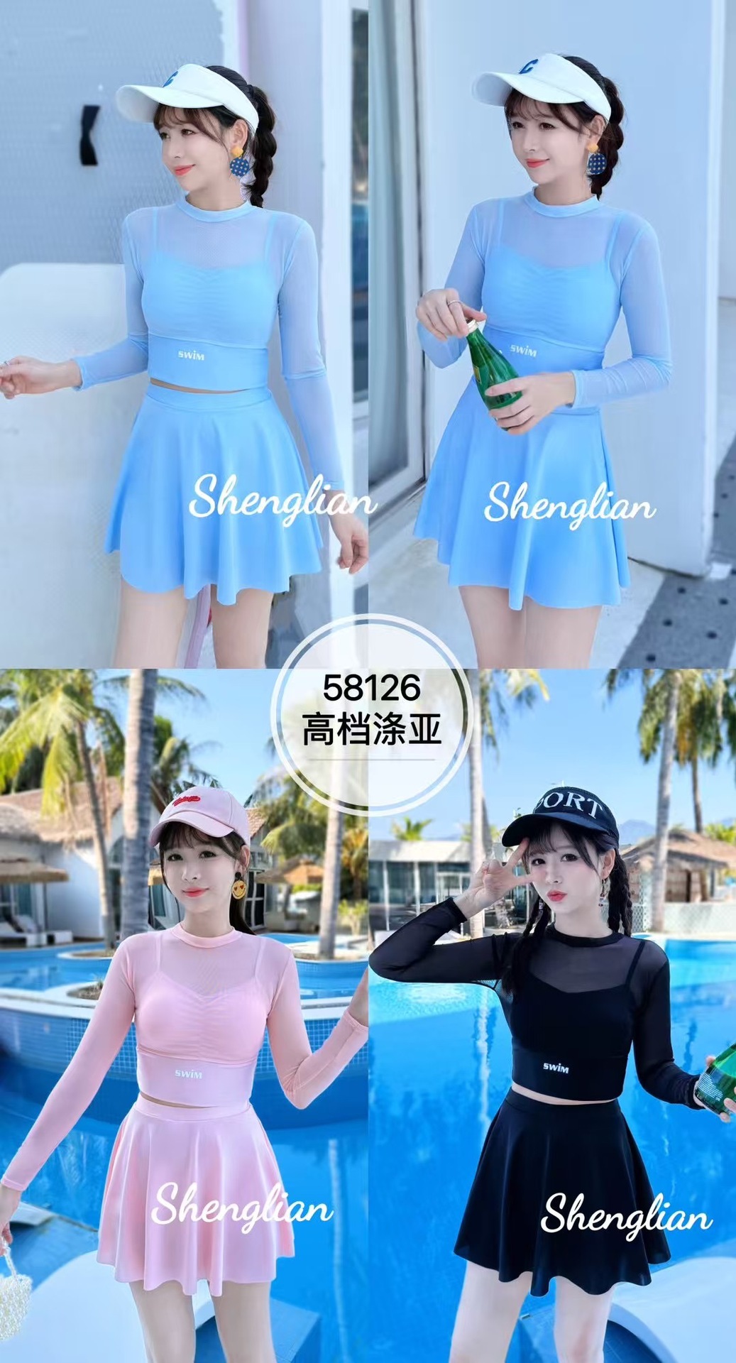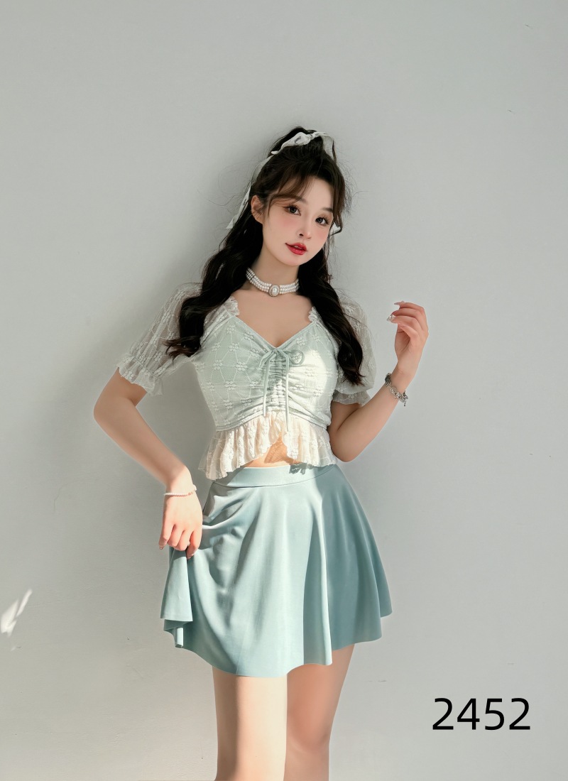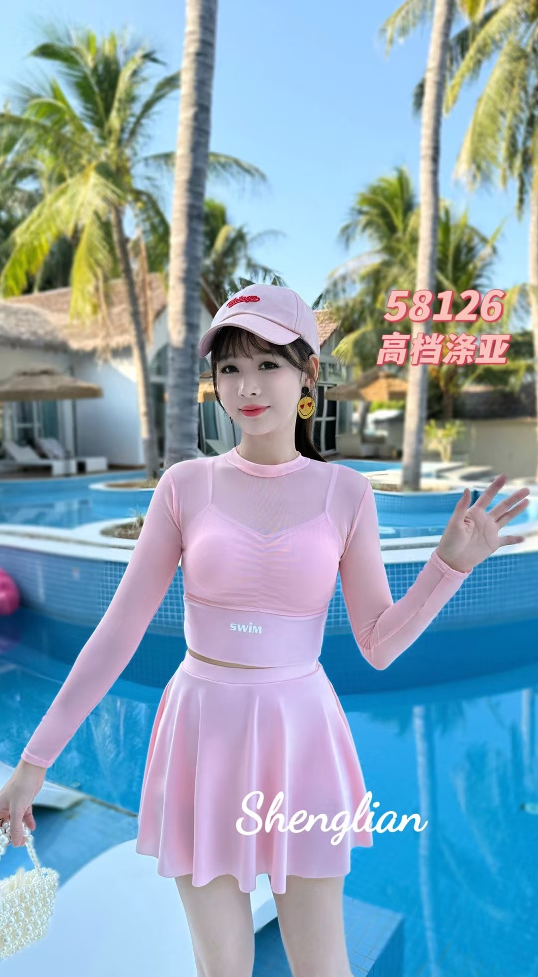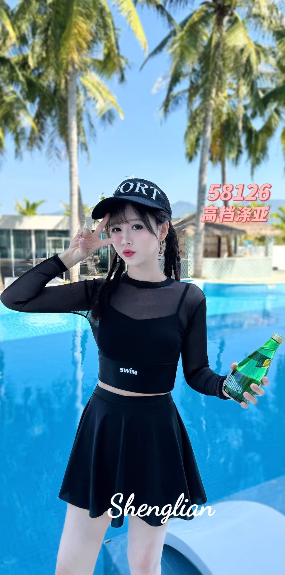 2025 여성 수영복 보수적으로 슬림 배꼽 장식 스커트 수영복 학생 비치 온천 수영복 배치