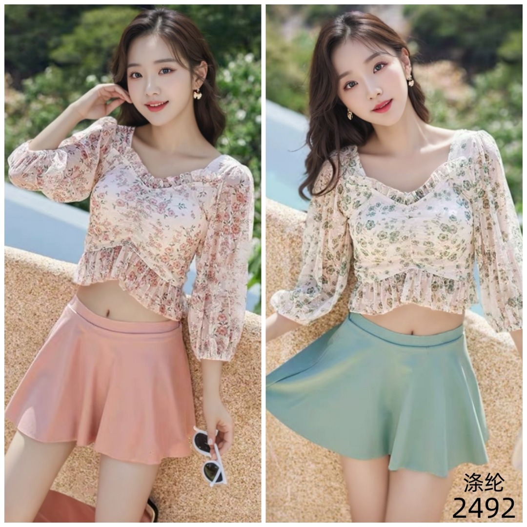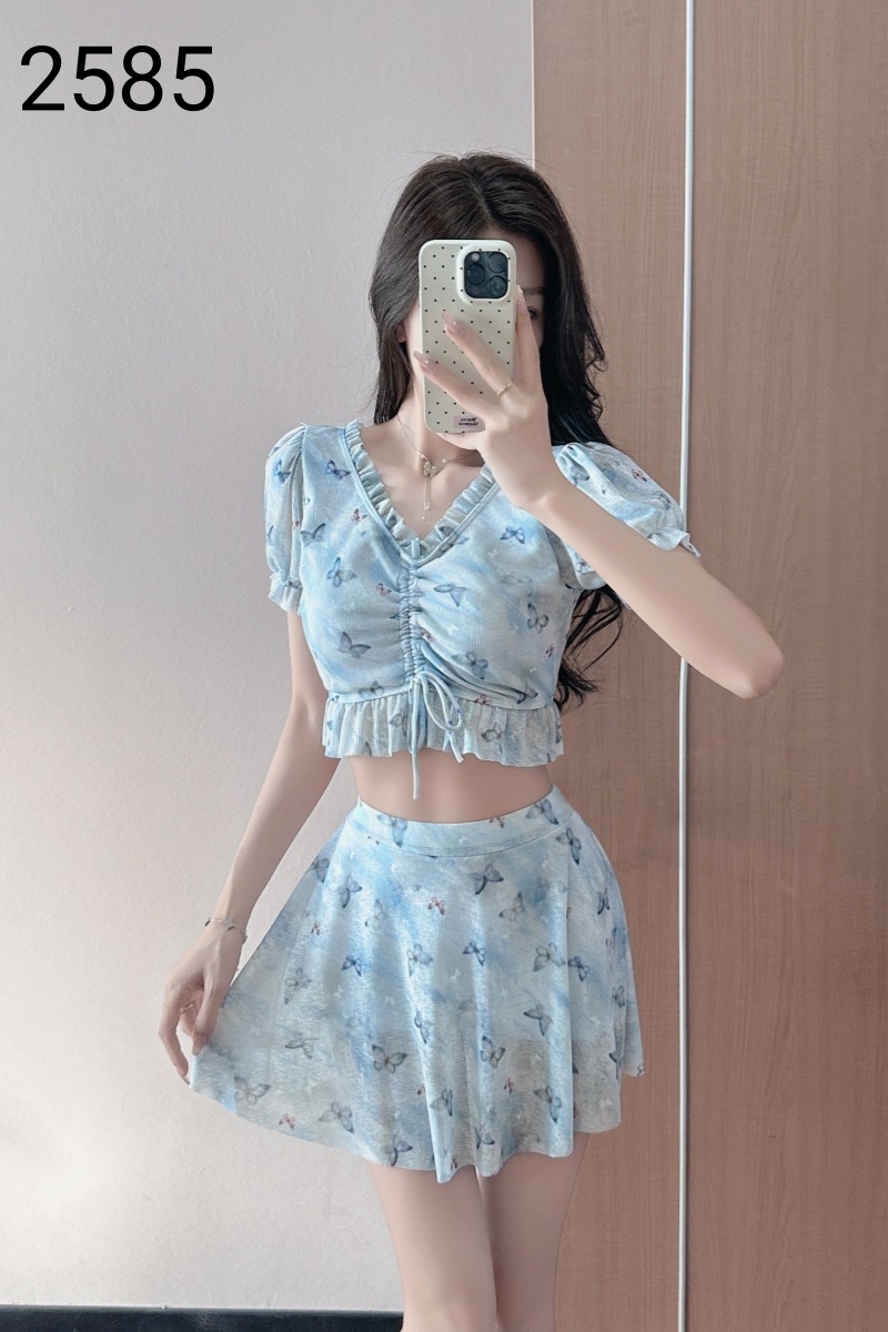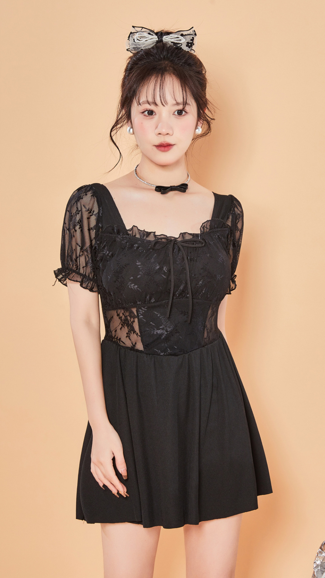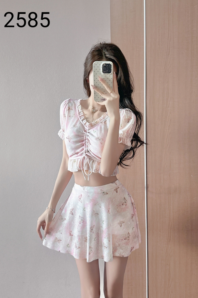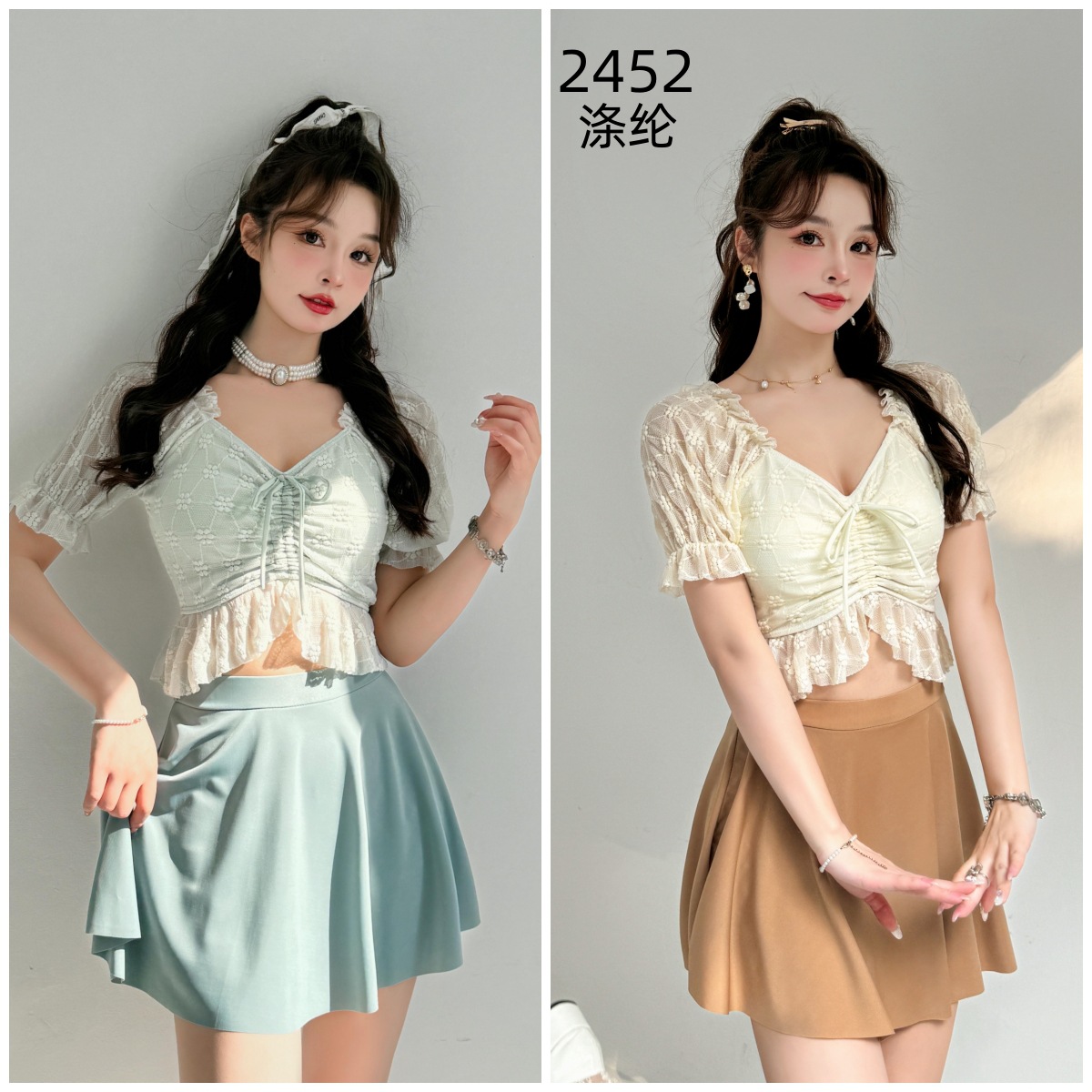 2025 여성 수영복 보수적으로 슬림 배꼽 장식 스커트 수영복 학생 비치 온천 수영복 배치