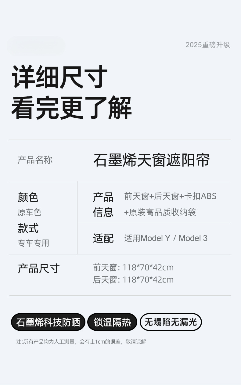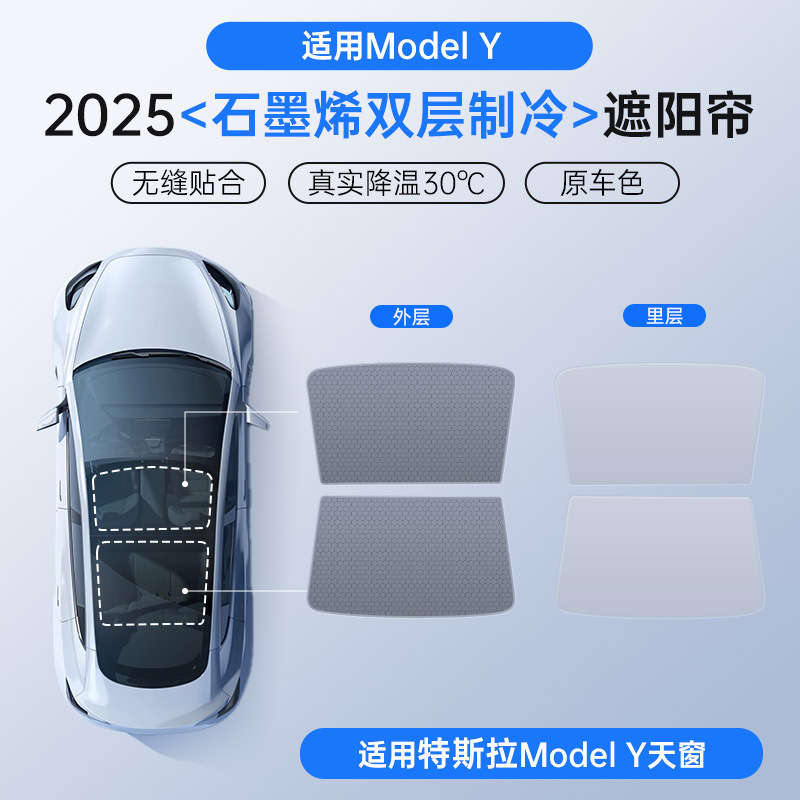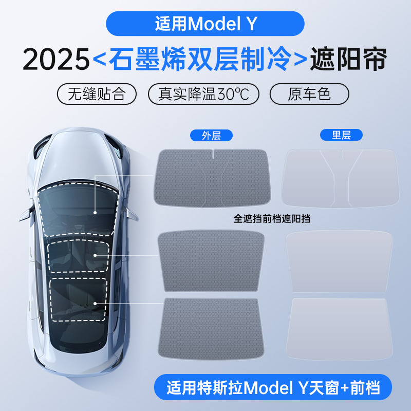 • [모델 Y 선루프] 리얼 더블 레이어 그래핀 아이스 실크 ◆ 초절연으로 더 시원함 ◆ 오 붕괴