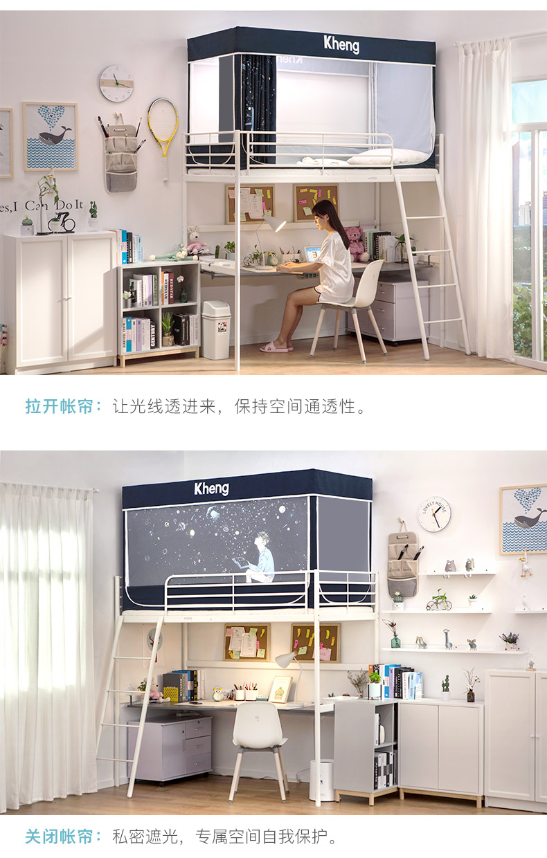 차광 침대 커튼과 모기장이 통합된 대학 기숙사 상층 및 하층 침대 일체형 기숙사 두꺼운 지지대스토어 가기