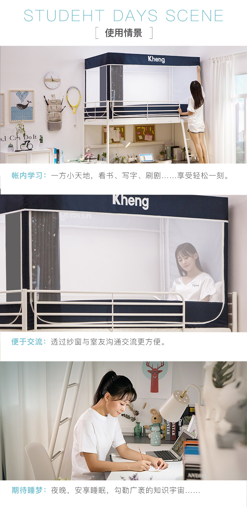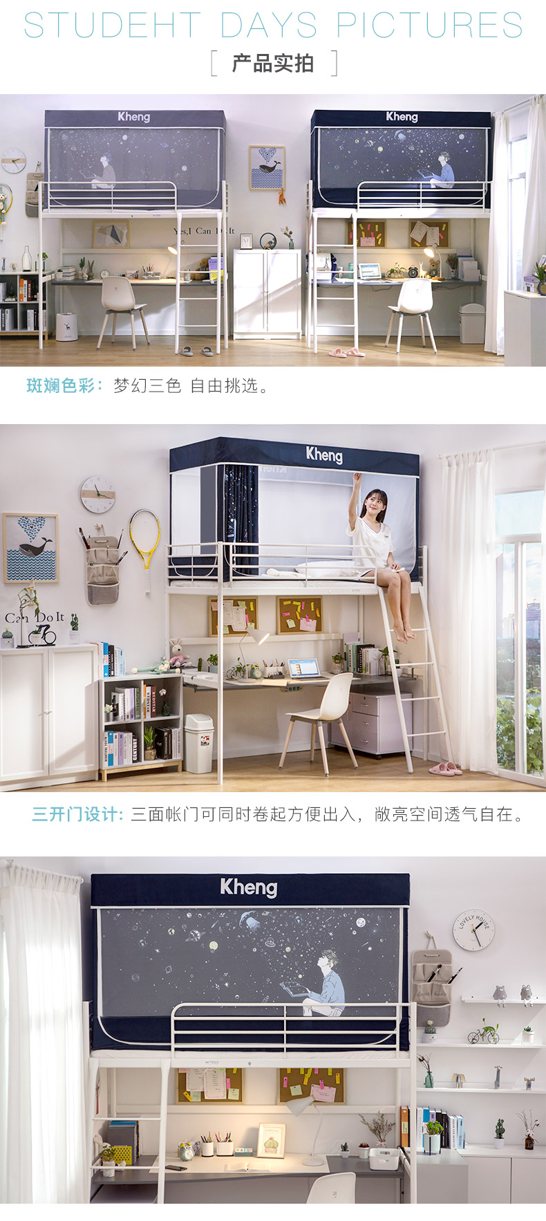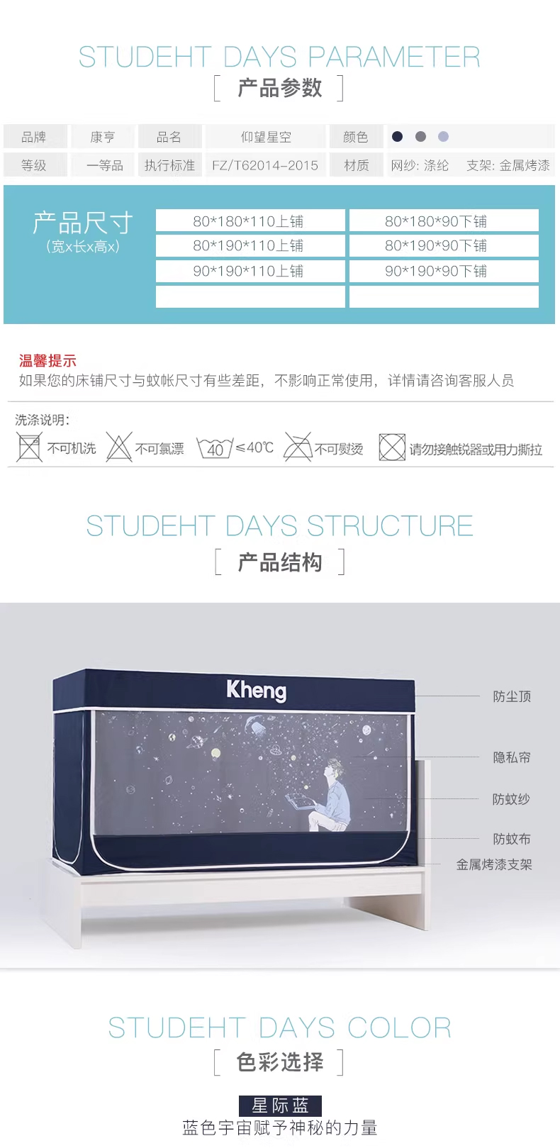 차광 침대 커튼과 모기장이 통합된 대학 기숙사 상층 및 하층 침대 일체형 기숙사 두꺼운 지지대