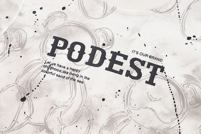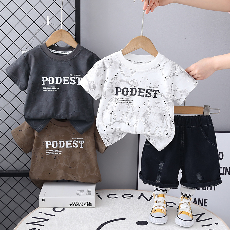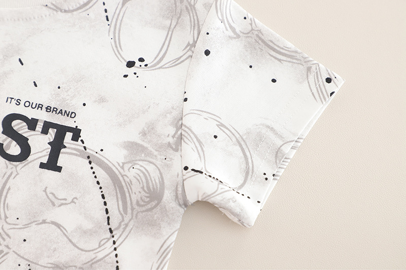 어린이와 중년 어린이 창의적인 풀 프린트 곰 라운드 넥 통기성 루즈 슈트 여름 신작 캐주얼 반팔 티셔츠 투피스 세트