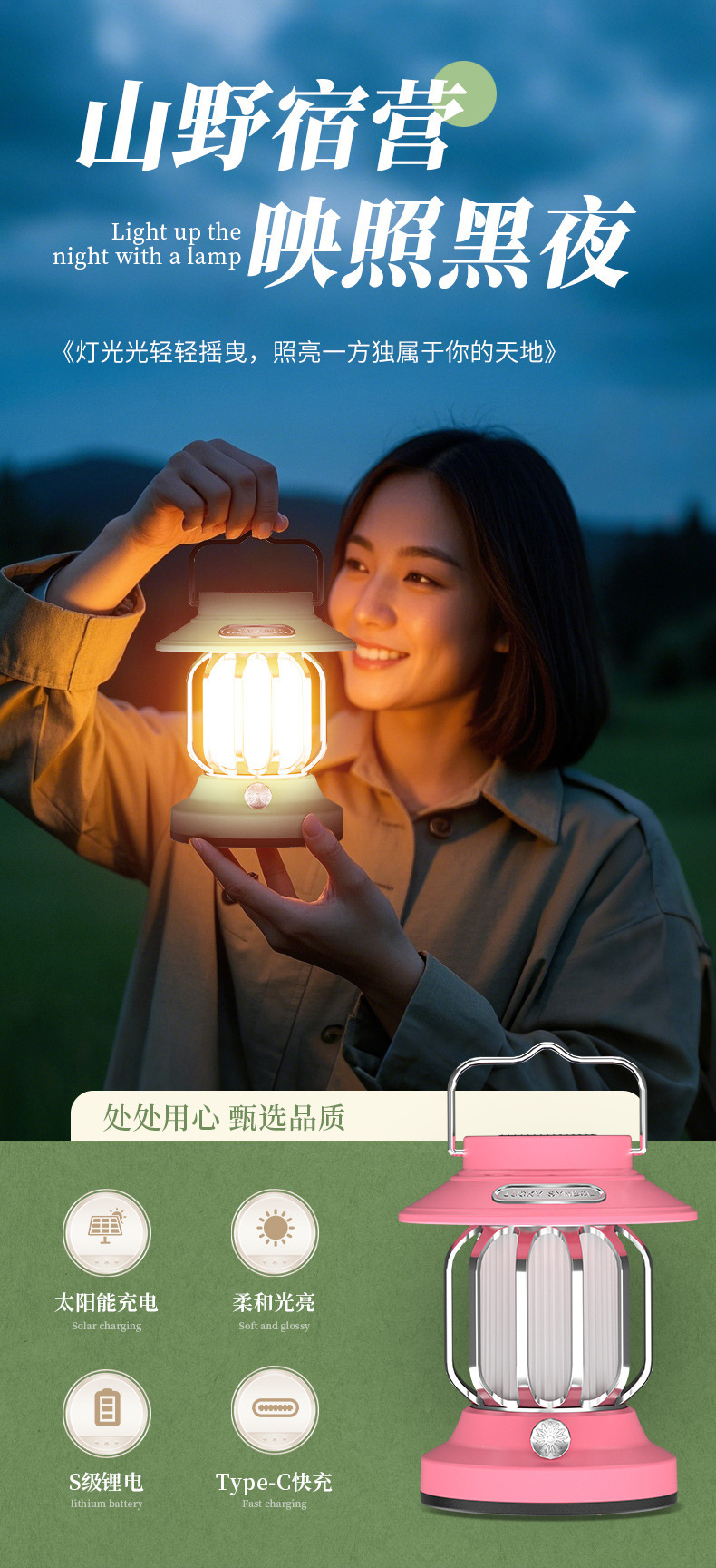 야외 태양 캠핑 램프 레트로 캠핑 램프 야시장 스톨 분위기 램프 텐트 램프 휴대용 램프 조명 램프