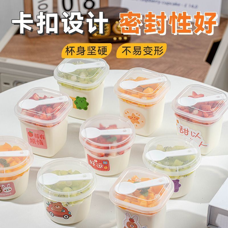 더블 스킨 밀크 컵 푸딩 투명 컵 뚜껑이 달린 새로운 디저트 젤리 밀크 젤리 상자 포장 요구르트 플라스틱