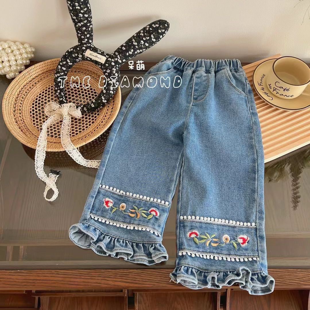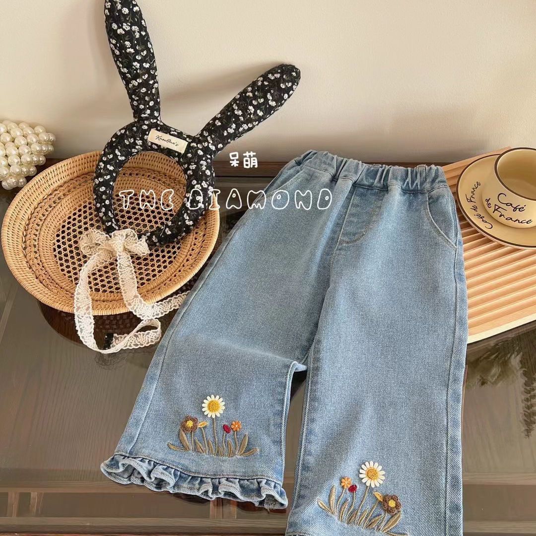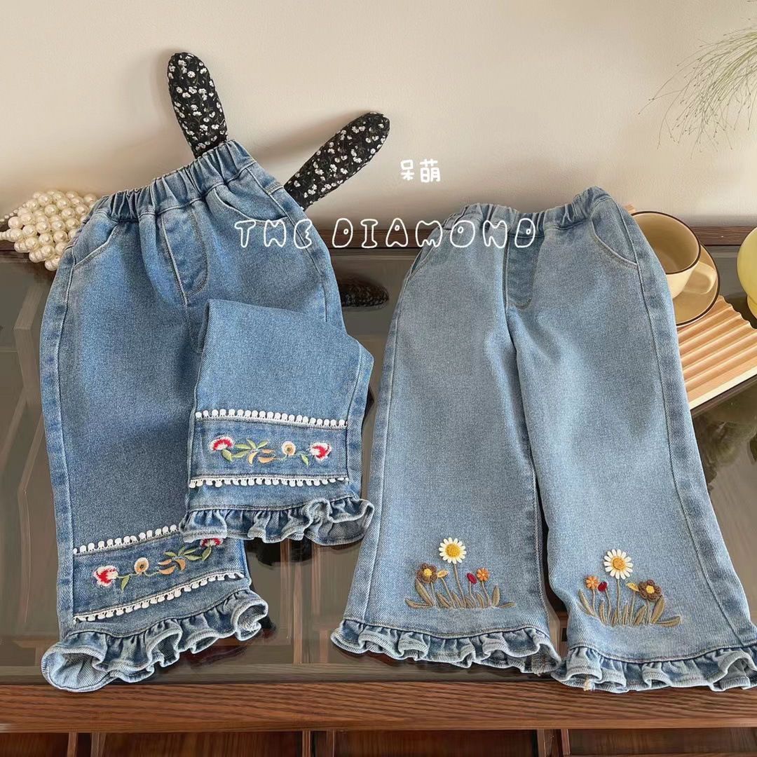 봄과 가을 어린이 유행 새로운 스타일 소녀 한국 스타일 플레어 바지 어린 소녀 아기 청바지스토어 가기