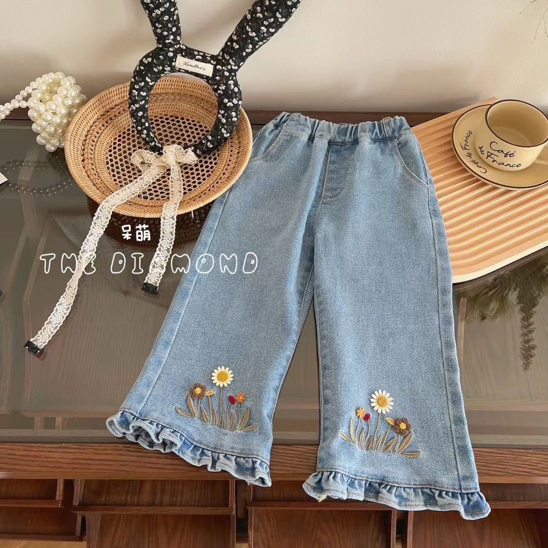 봄과 가을 어린이 유행 새로운 스타일 소녀 한국 스타일 플레어 바지 어린 소녀 아기 청바지