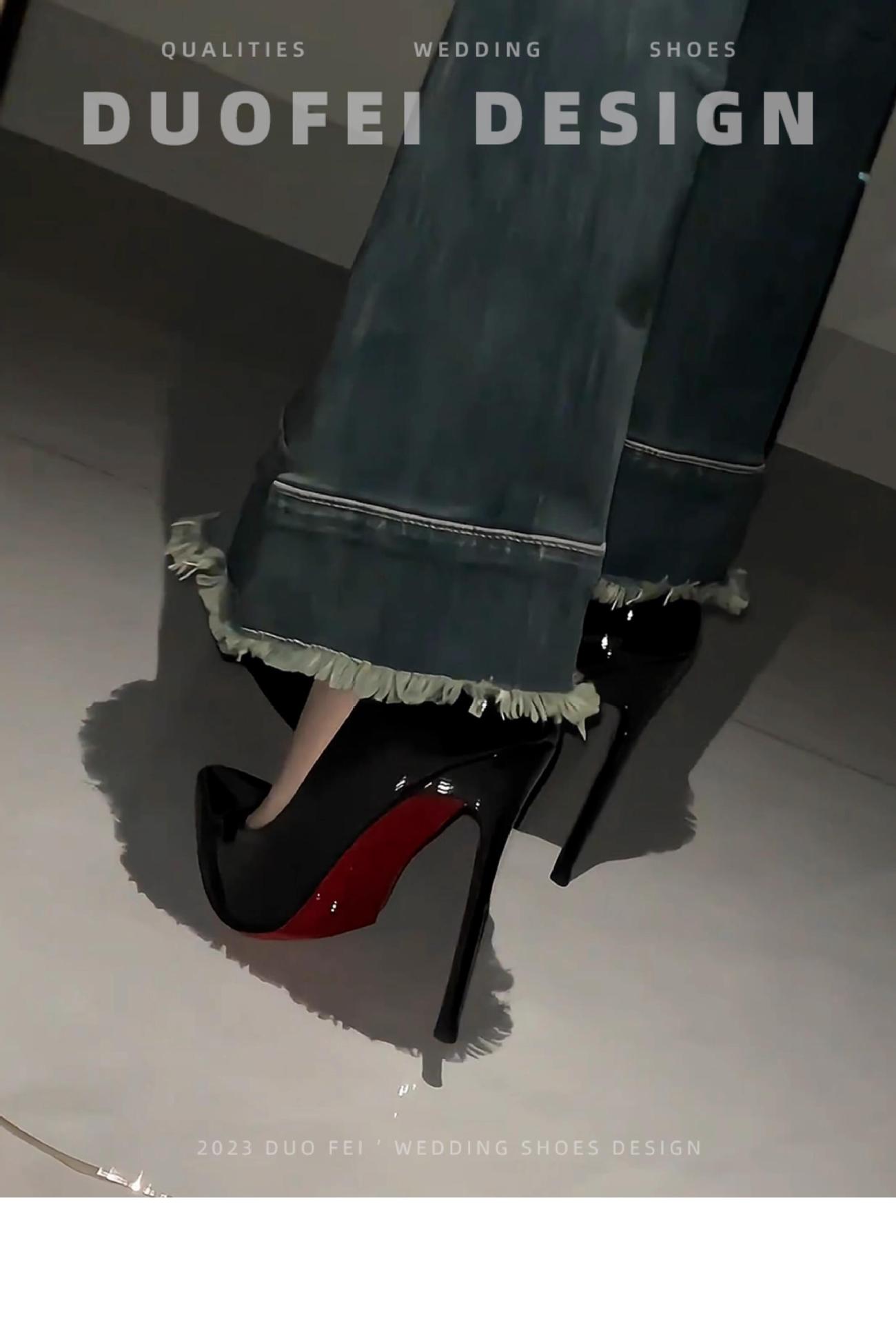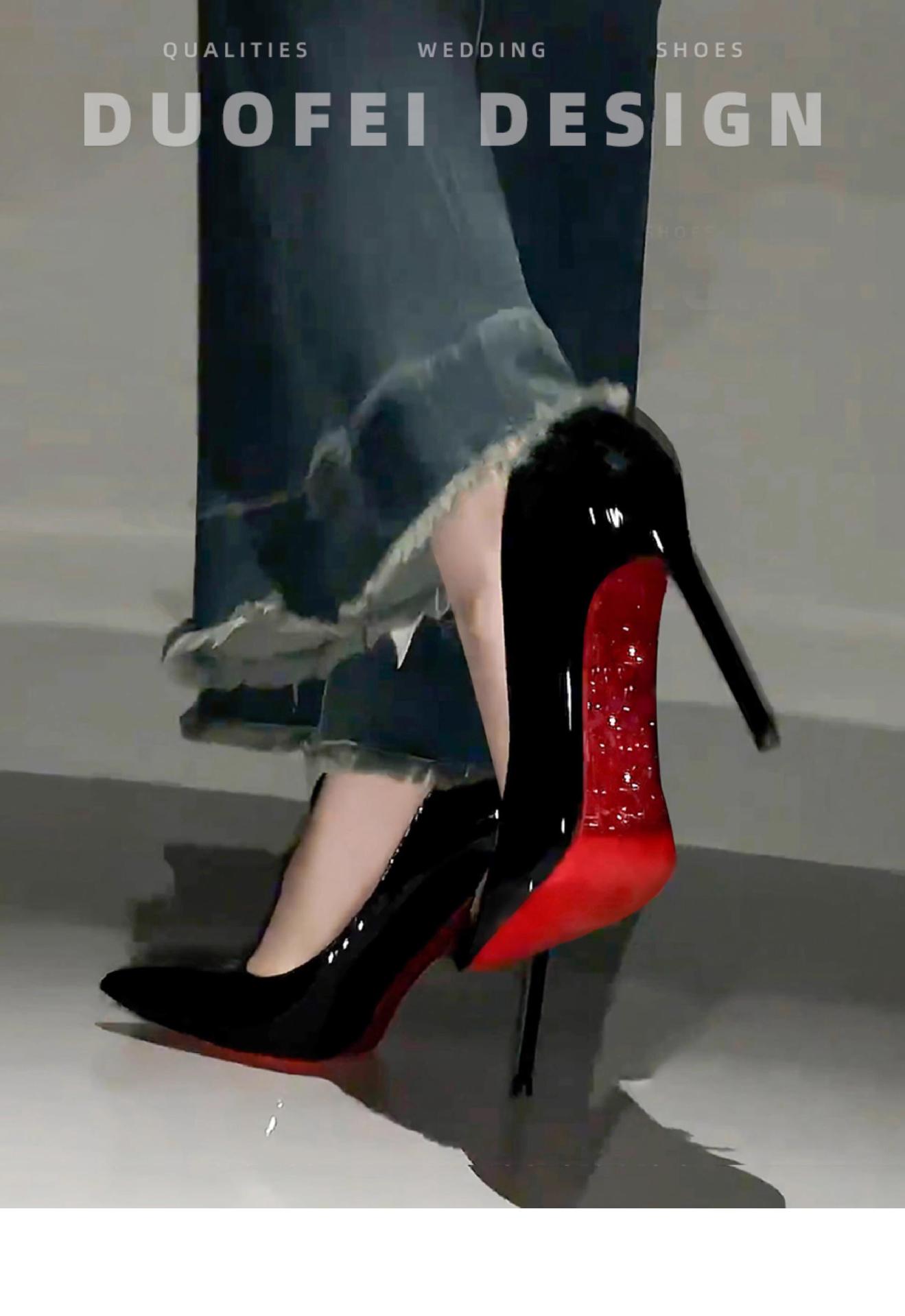 레드 바닥 라인스톤 하이힐, 여성스러운 여성스러운 스틸레토 힐, 블랙 페이턴트 가죽, 다재다능하고 우아한 뷰티 포인티드 토 슈즈