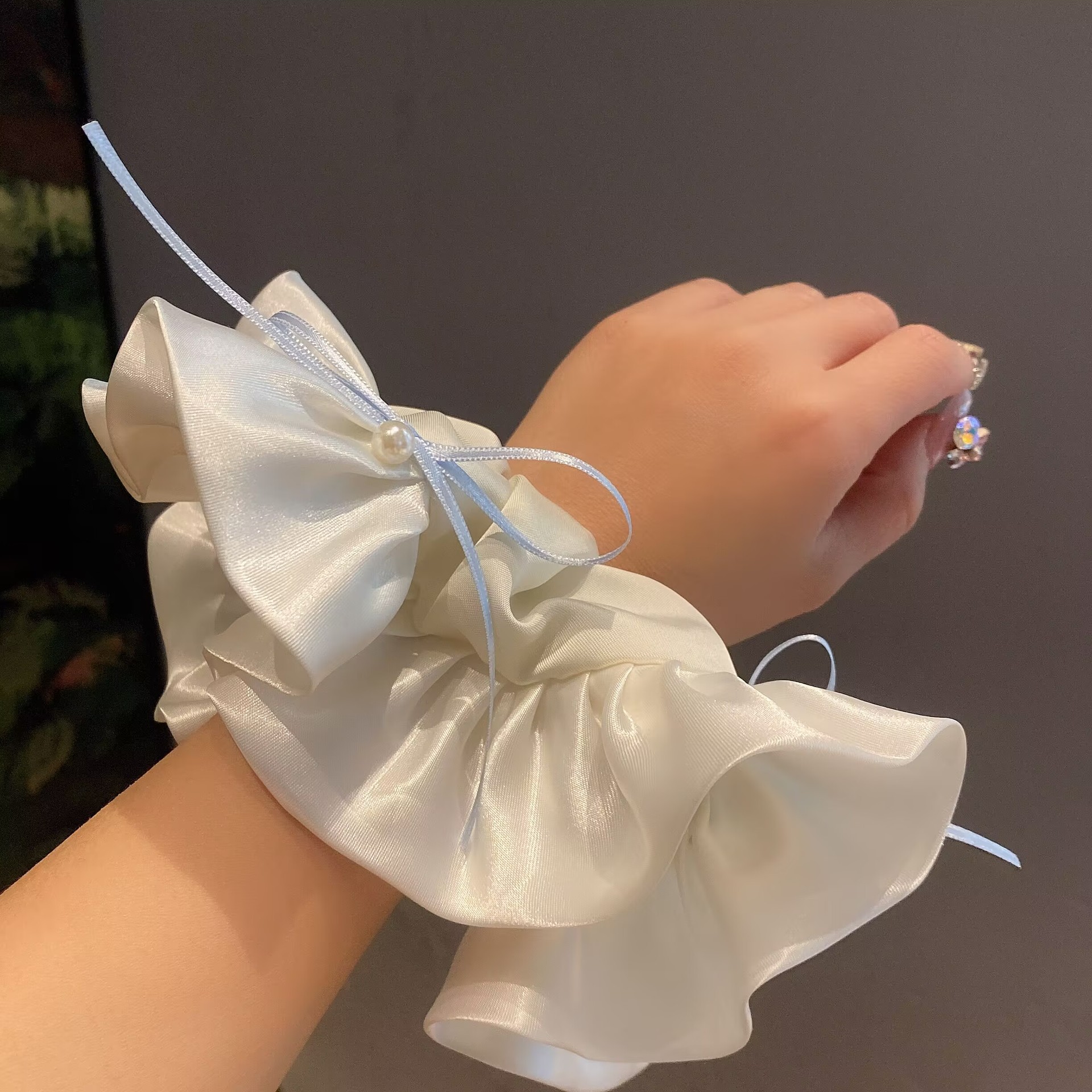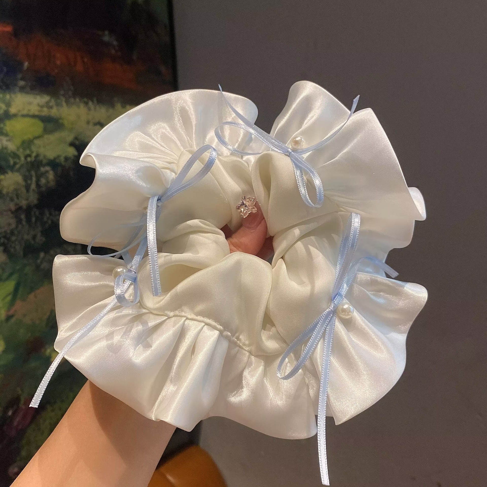 활 진주 블루 리본 새틴 대형 장내 헤어 링 여성 하이 스타일 한국 스타일 헤어 액세서리 헤드 라인 새로운 스타일