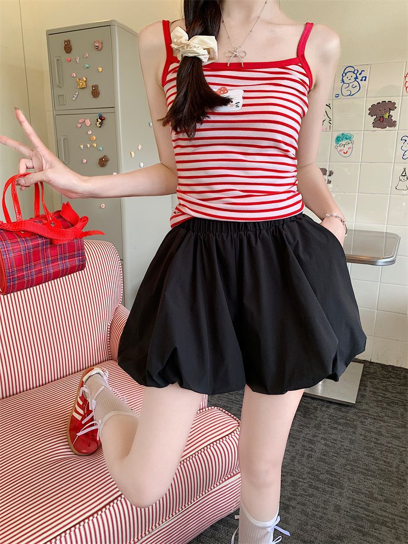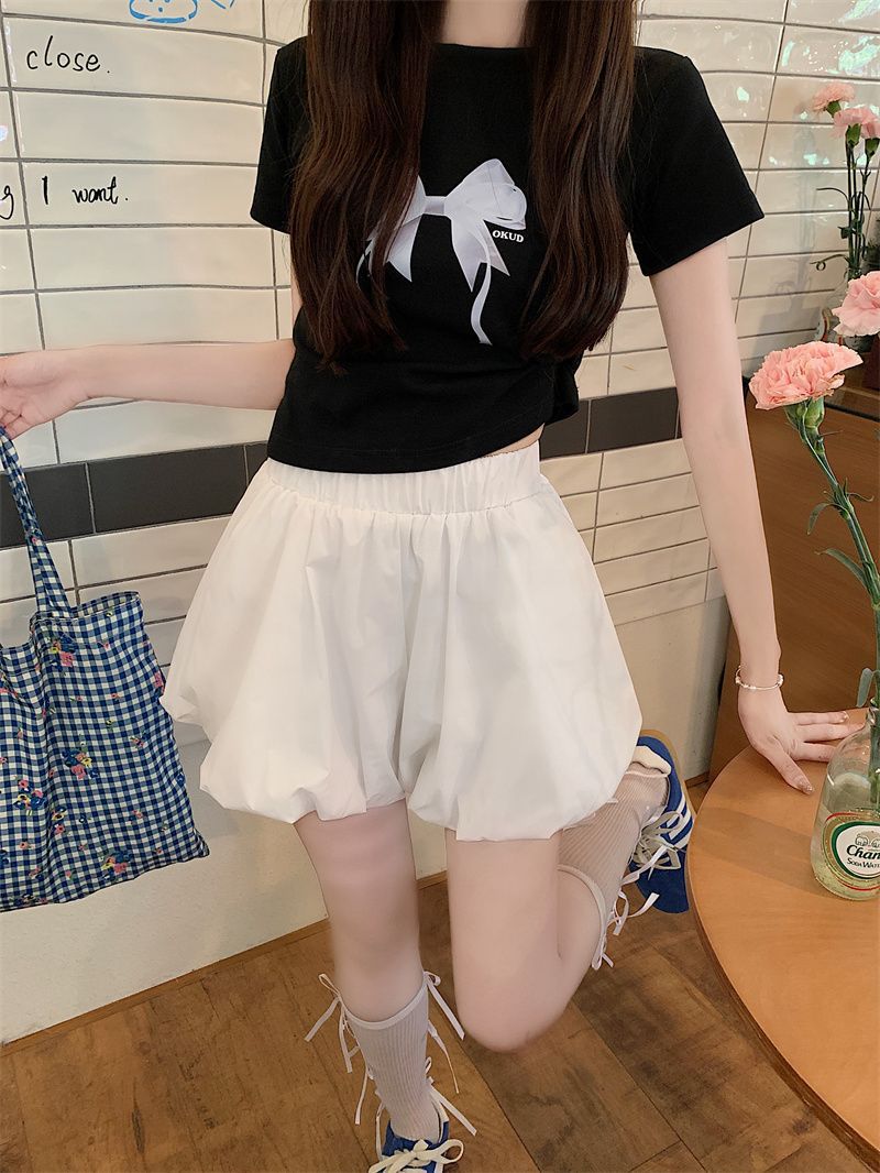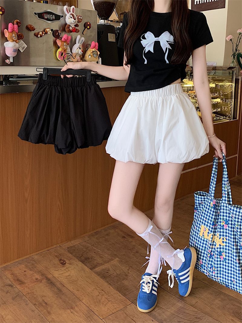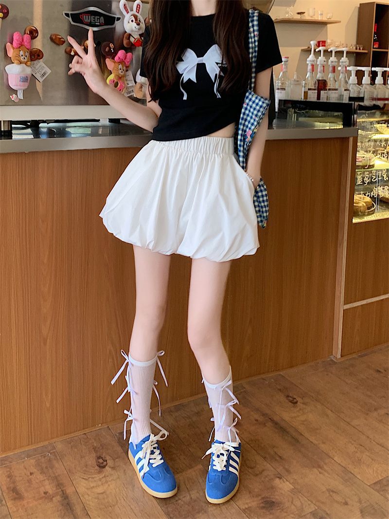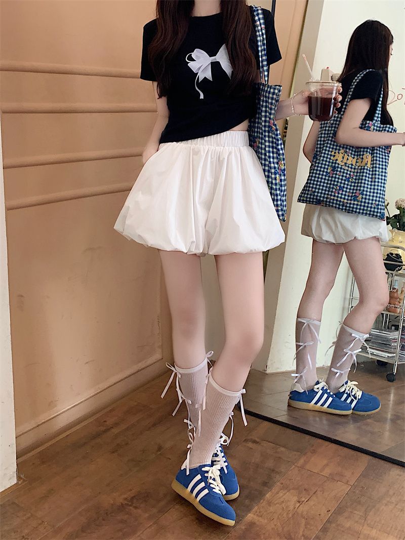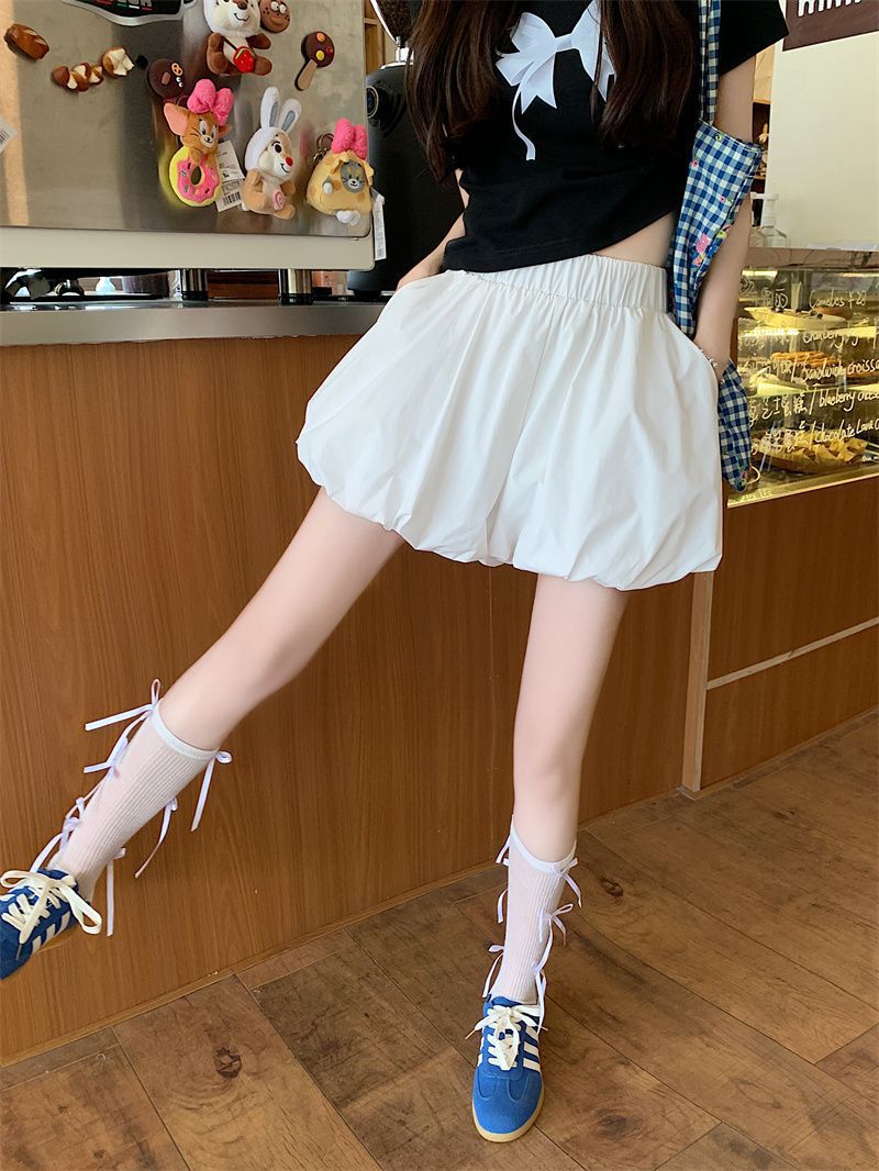 작은 여성을 위한 클라우드 버드 호박 퍼프 스커트, 노출 방지 안감, 컬리지 스타일 버블 스커트, 하이웨이스트 슬리밍 스커트