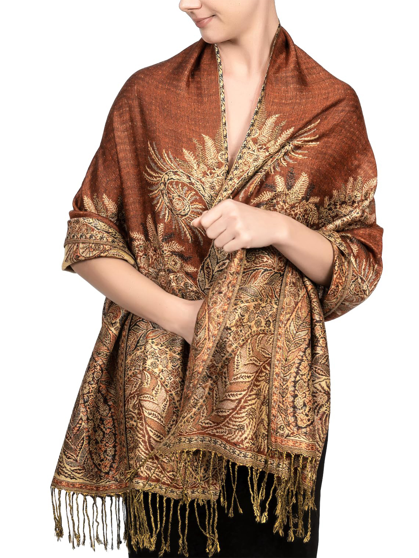 • 캐슈 자카드 스카프 - 러스트 레드