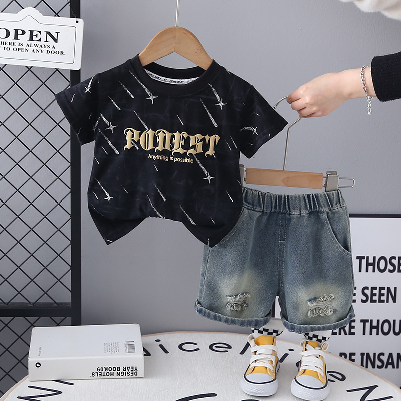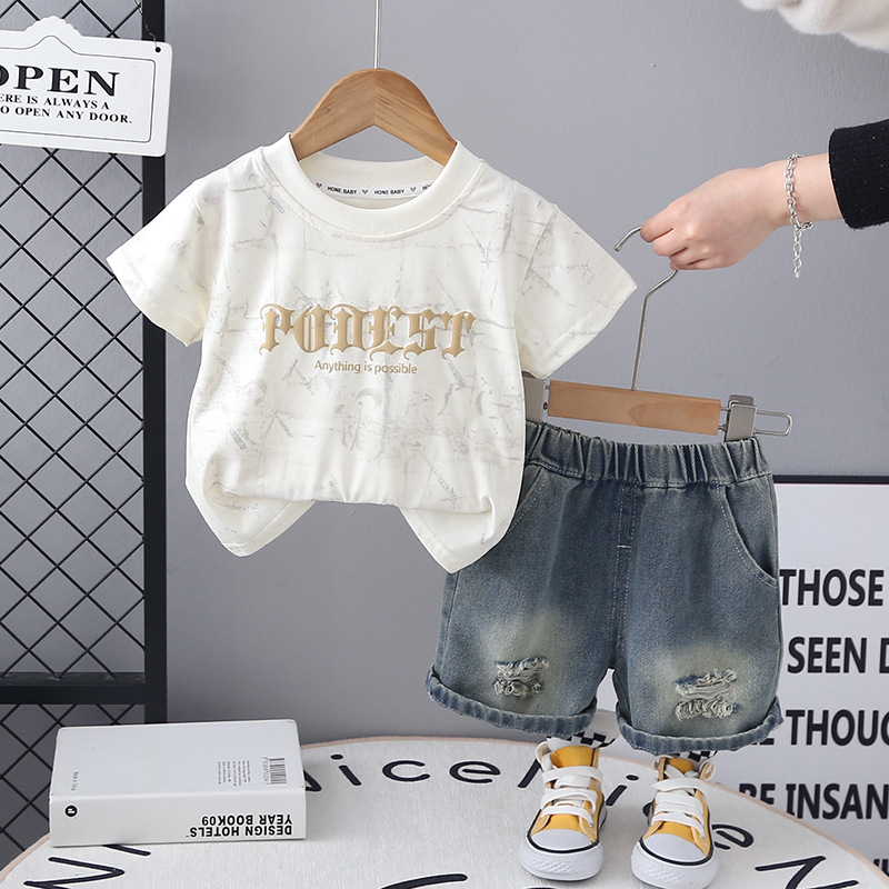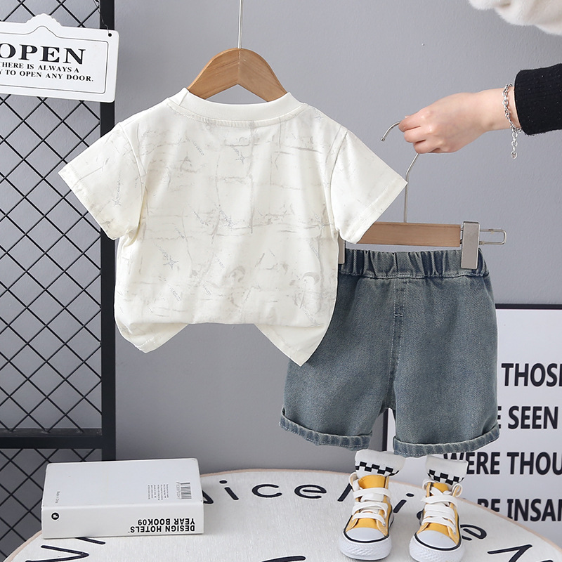 어린이 창의적인 타이 염색 라운드 넥 통기성 느슨한 양복 여름 새로운 캐주얼 반팔 티셔츠 투피스 세트 직접 판매스토어 가기