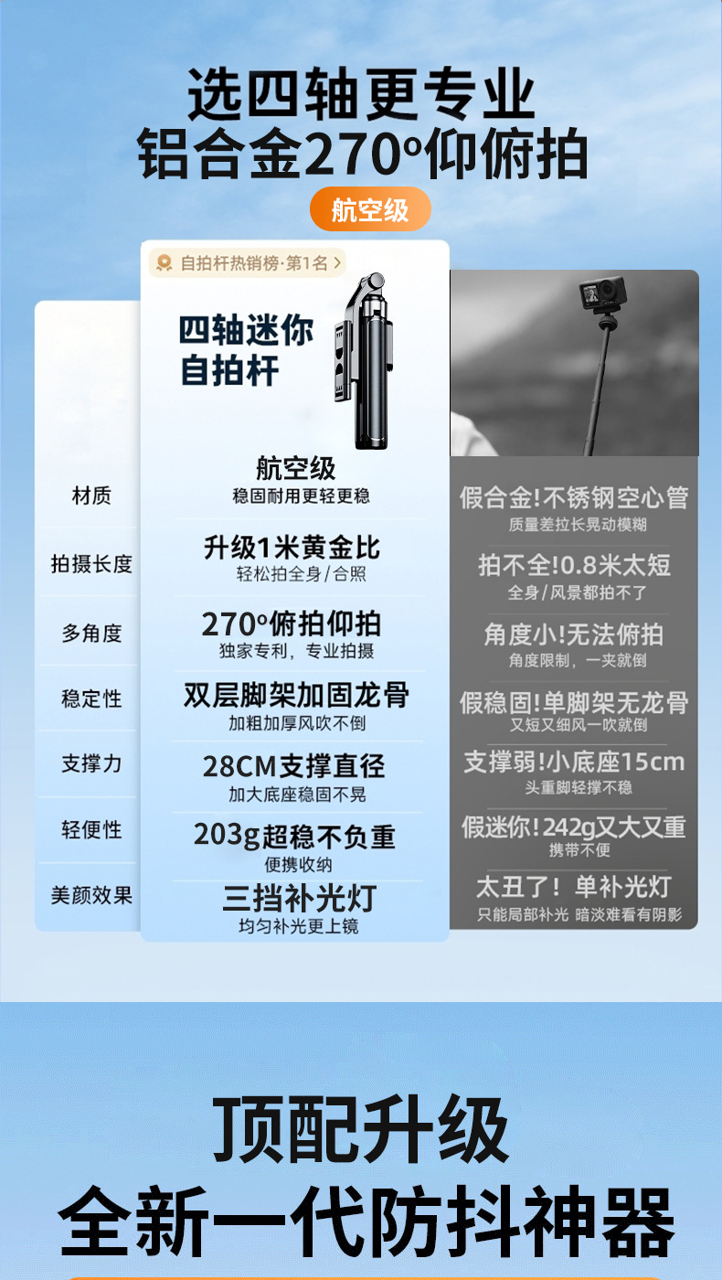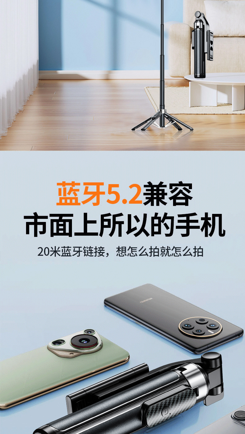 휴대용 미니 핸드헬드 블루투스 휴대폰 셀카봉 1.4m 삼각대(금속골대 포함) 라이브 스트리밍 브래킷스토어 가기