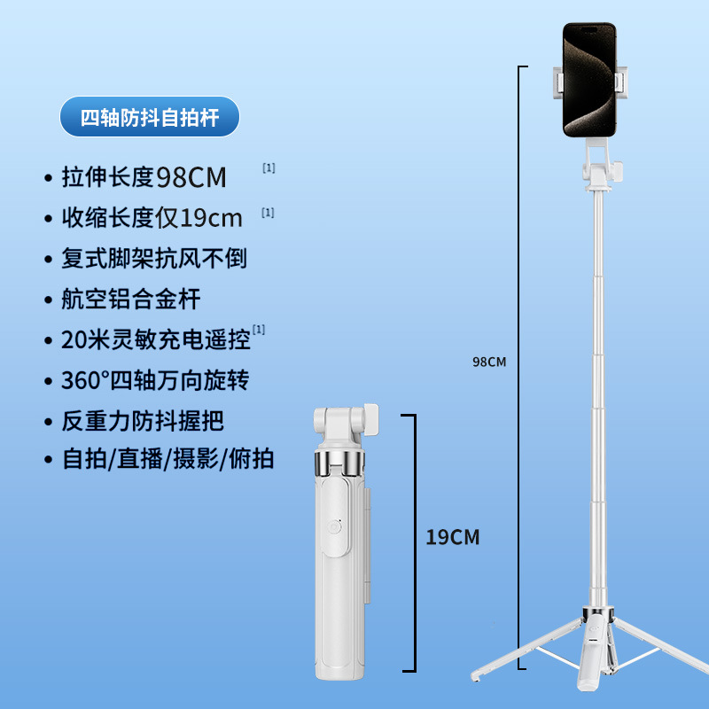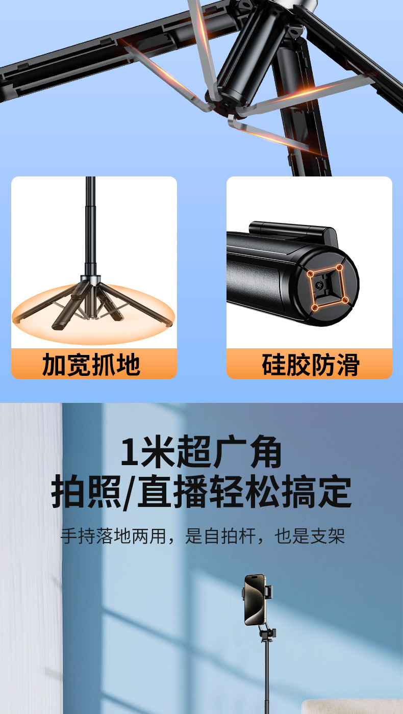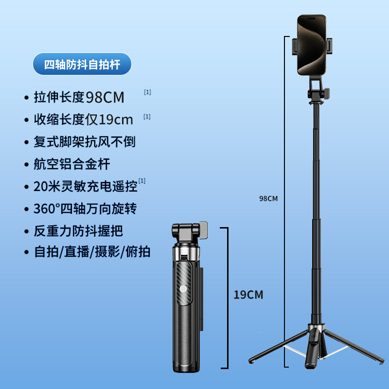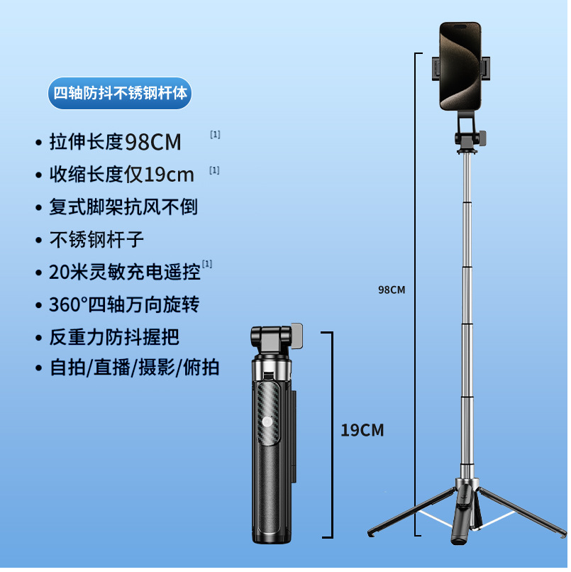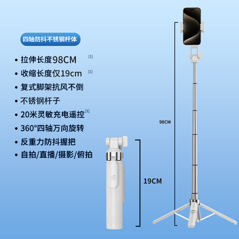 휴대용 미니 핸드헬드 블루투스 휴대폰 셀카봉 1.4m 삼각대(금속골대 포함) 라이브 스트리밍 브래킷