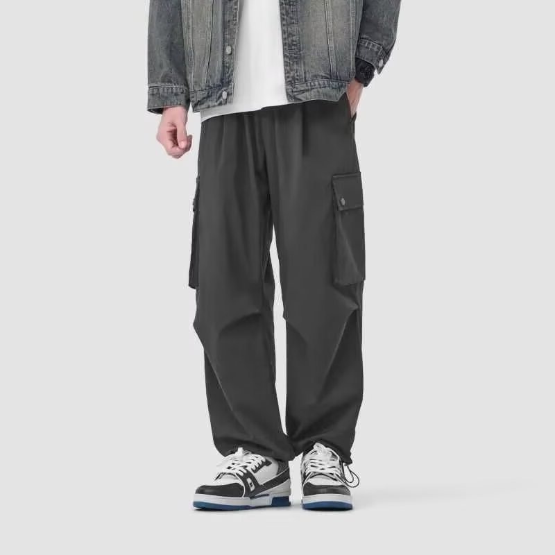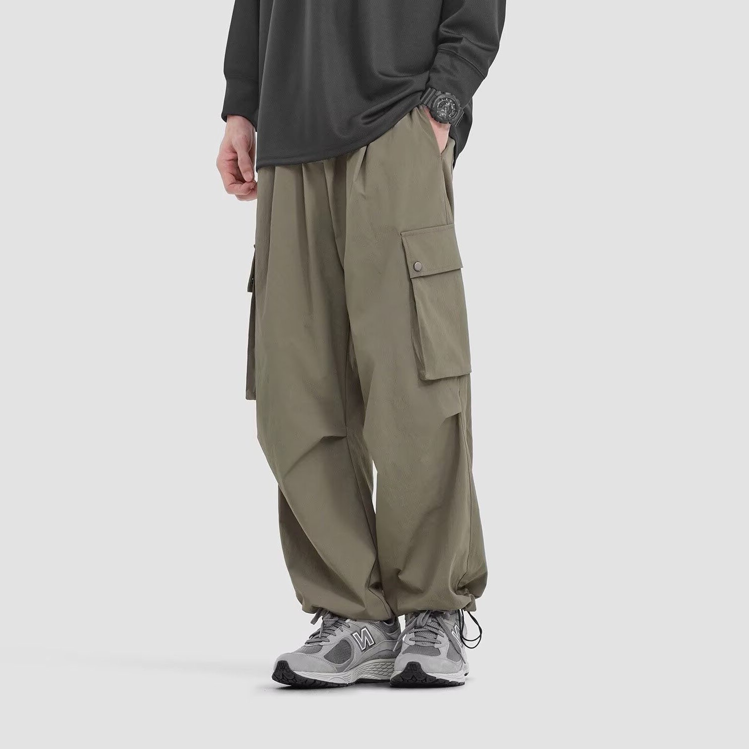 여름 얇은 남성 복고풍 드레이프 등산 야외 작업복 대형 포켓 낙하산 바지 남성용 캐주얼 바지