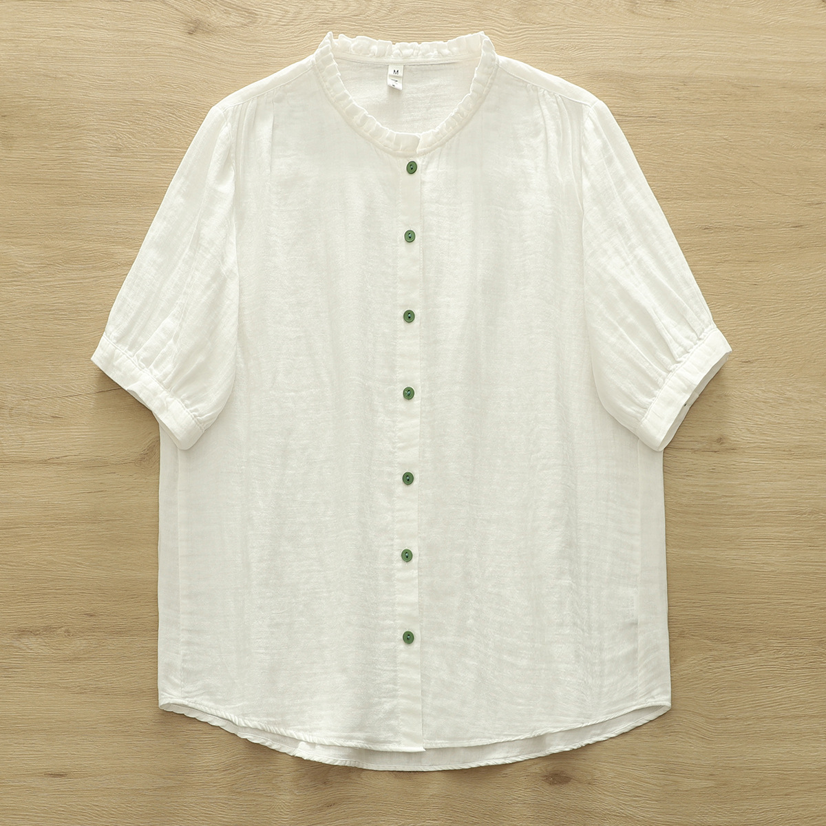 0 한국 스타일 레이스 칼라 그린 버튼 코튼 세븐 슬리브 셔츠 여자 2025 년 여름 새로운 슬림 카디건 탑
