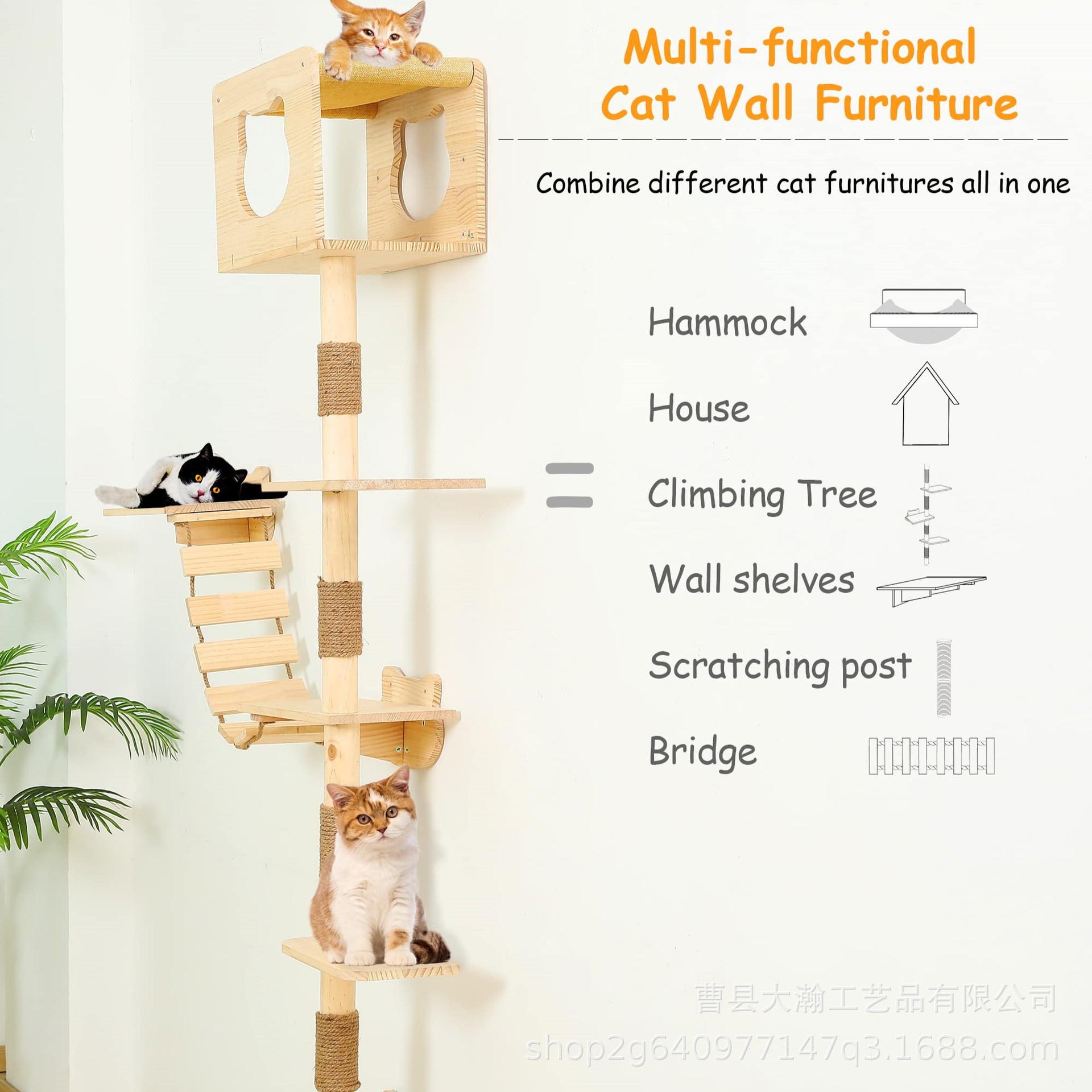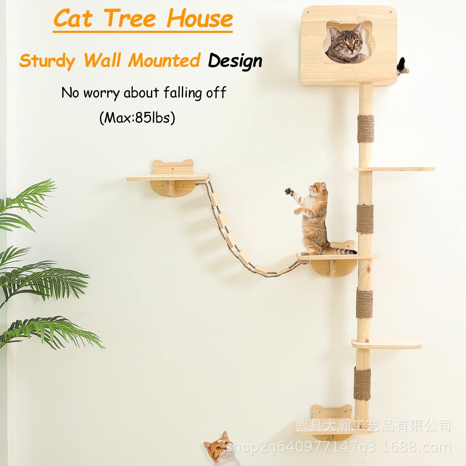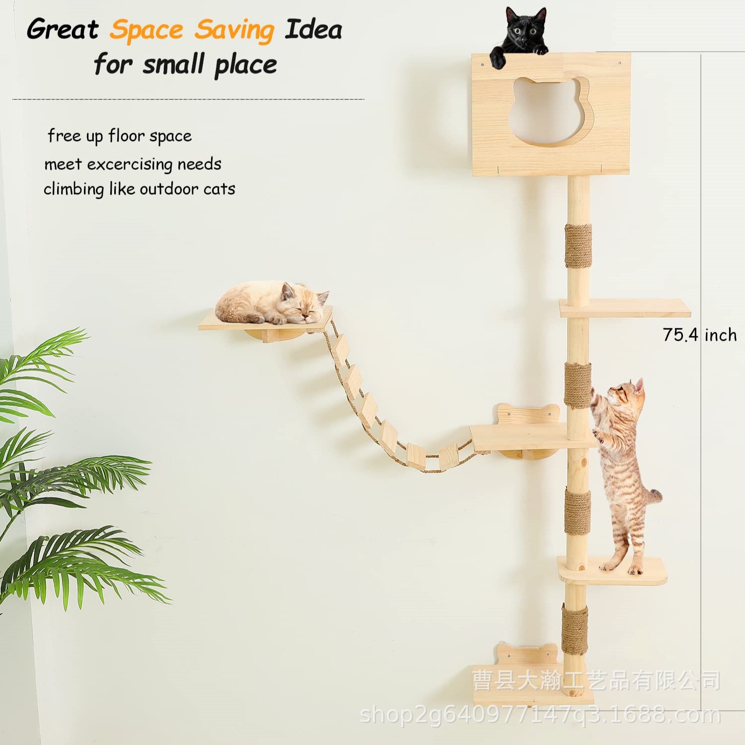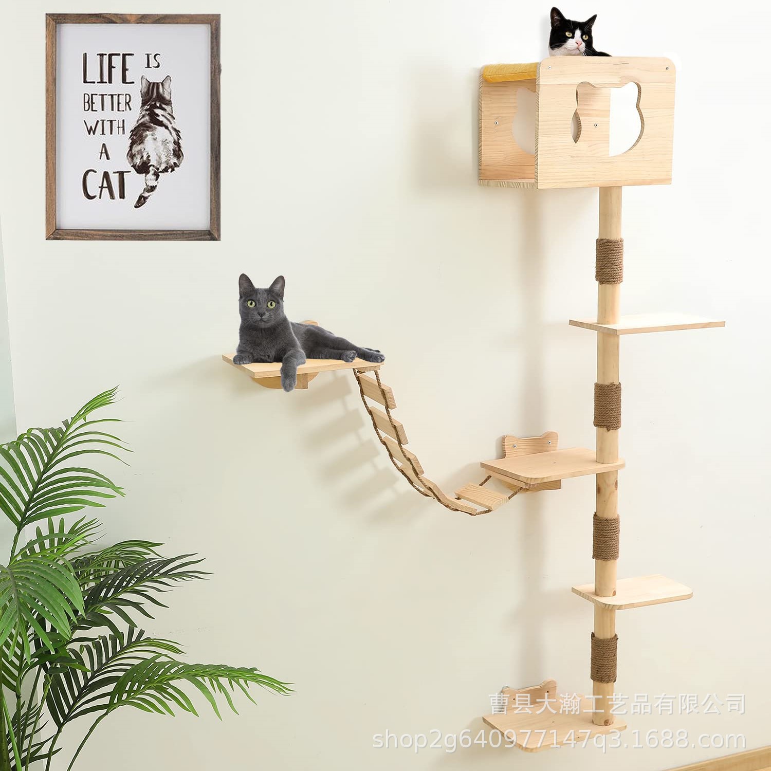 나무 고양이 클라이밍 프레임, 애완동물 둥지, 고양이 트리, 벽걸이형 고양이 스크래치 컬럼, 고양이 점프 플랫폼, 집 벽 장식, 애완동물 장난감스토어 가기