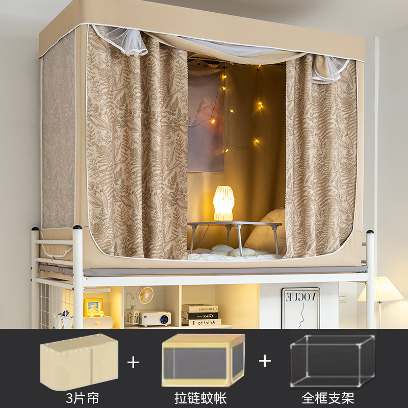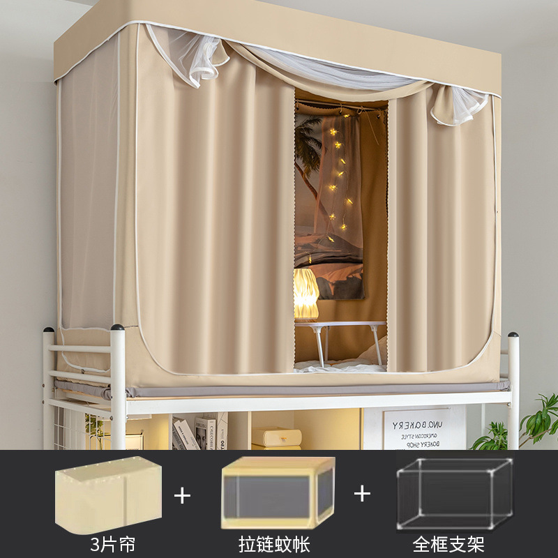 • 奶茶咖3片厚帘+带顶拉链蚊帐+全框支架⚑✦