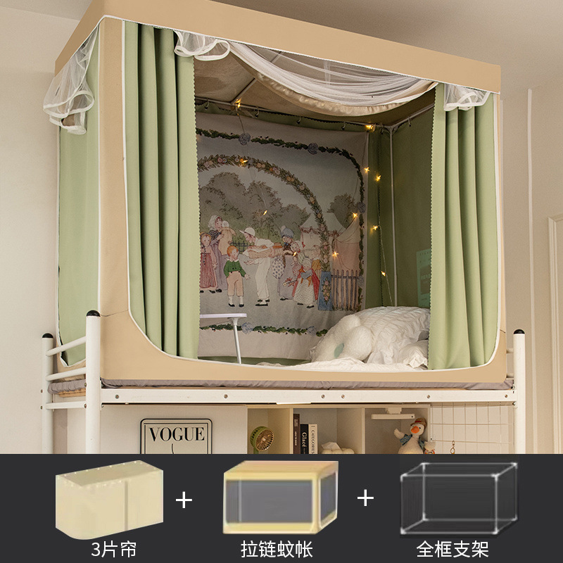 • 抹茶绿3片厚帘+带顶拉链蚊帐+全框支架⚑✦