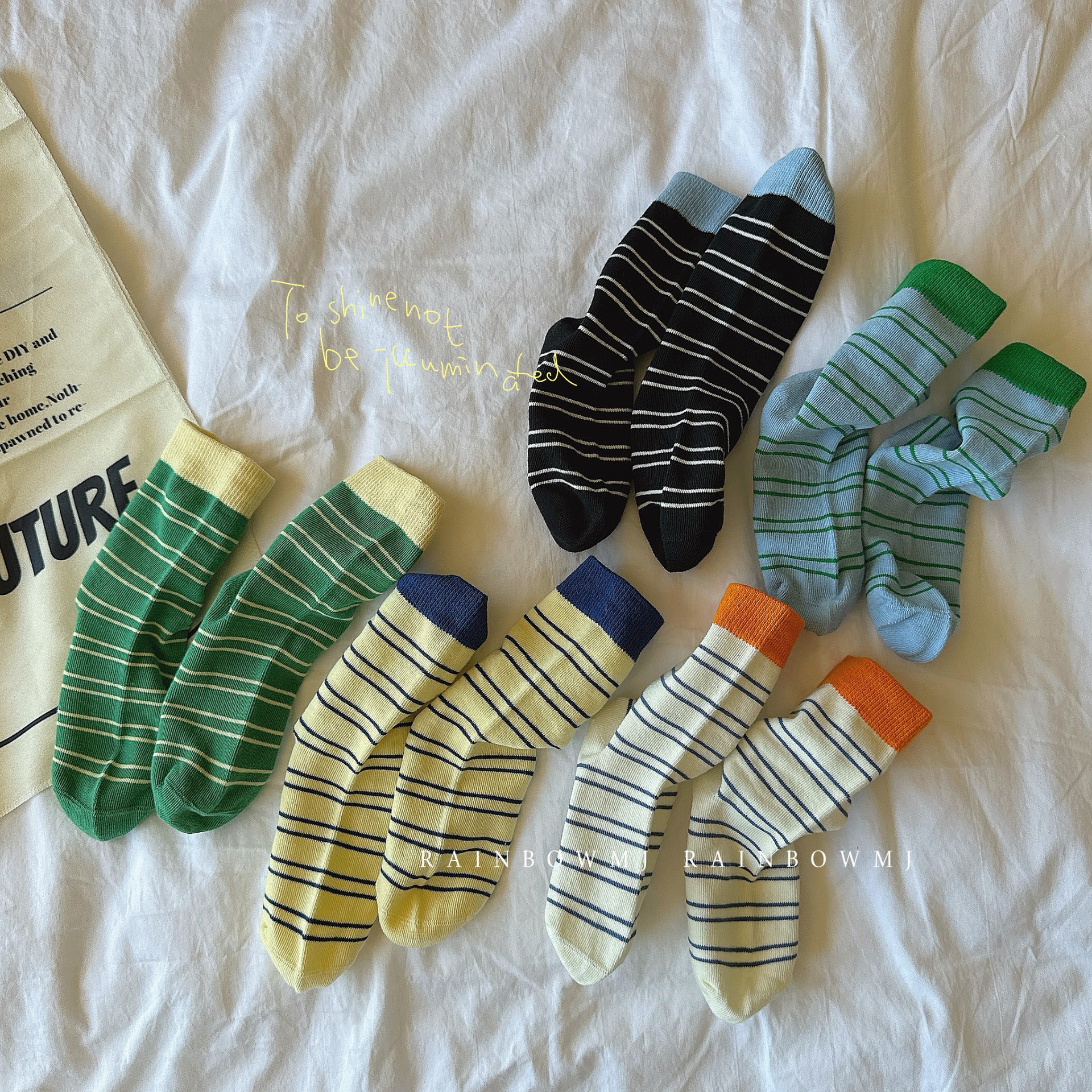 클래스 뼈없는 어린이 양말 일본식 줄무늬 소년 소녀 스타킹을위한 세련된 양말 간단한 캐주얼 학생 스타킹