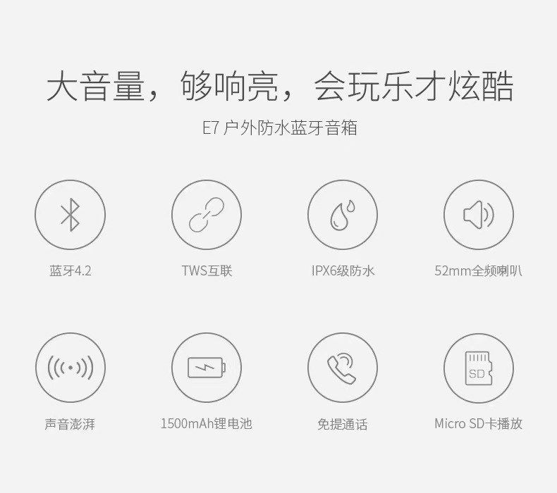 놓치지 마세요 E7 무선 블루투스 스피커 서브우퍼 야외 휴대용 대용량 오디오 사이클링 소형 휴대용스토어 가기