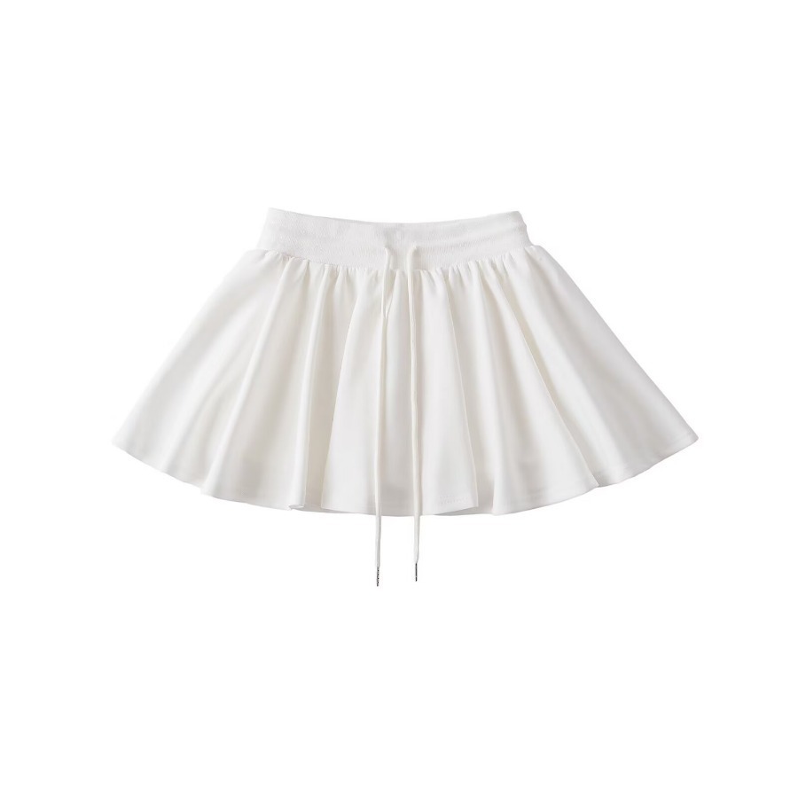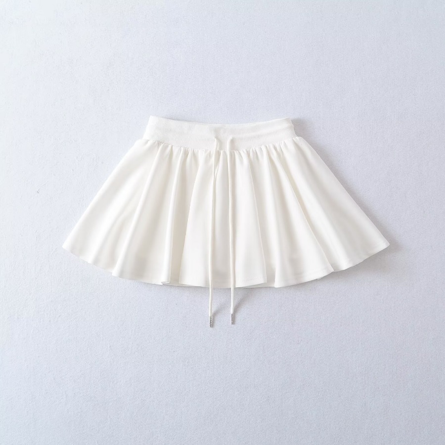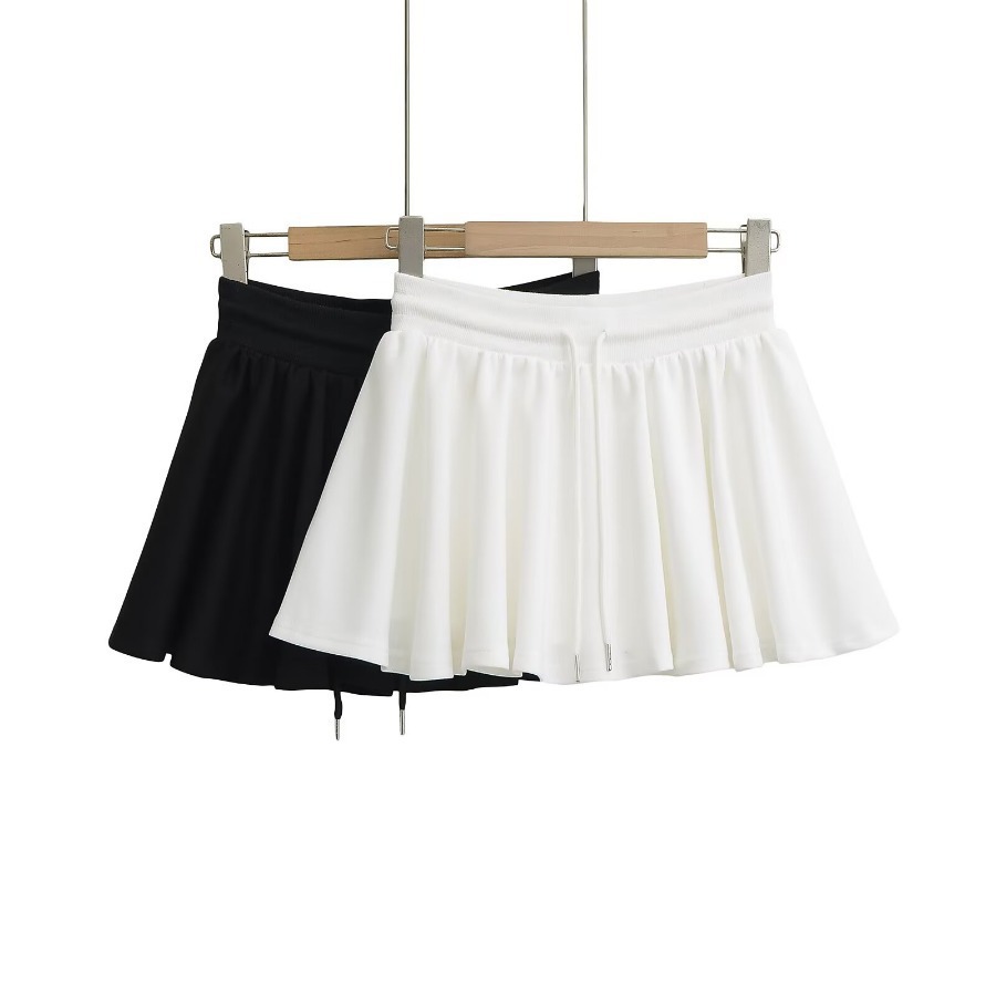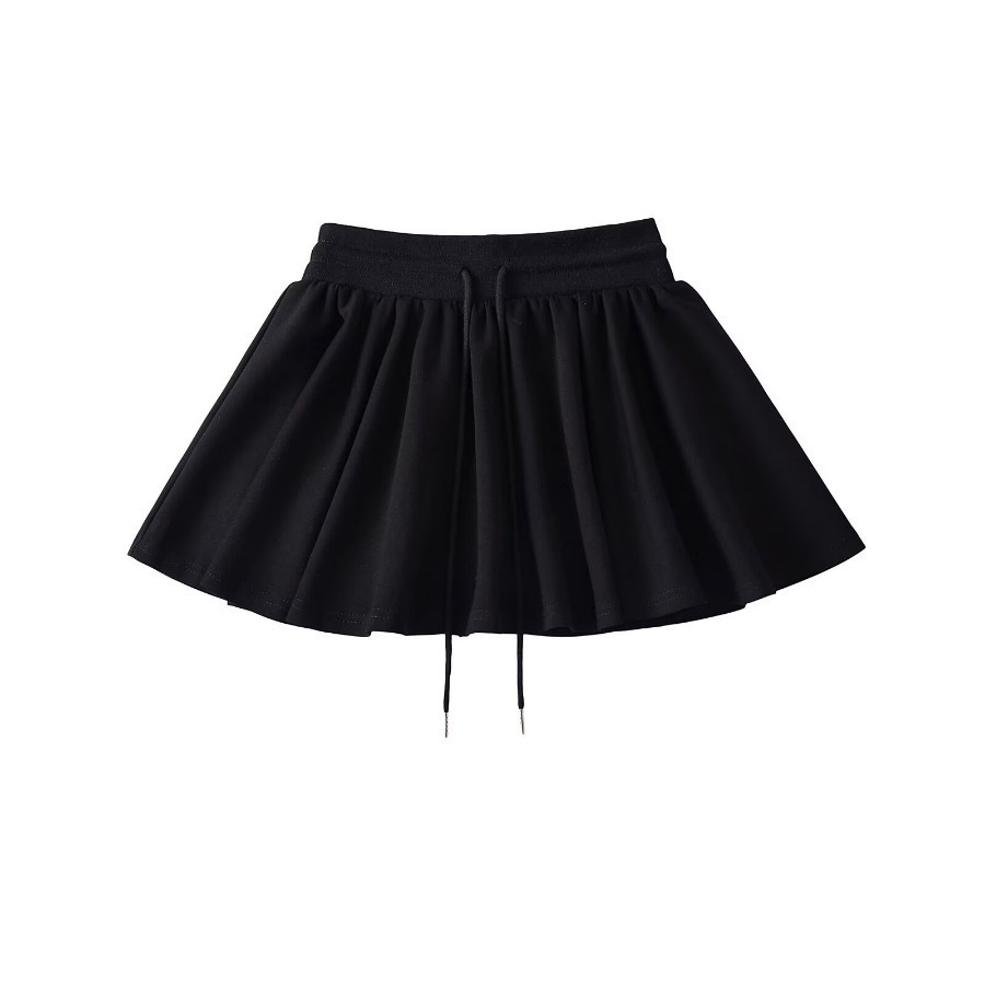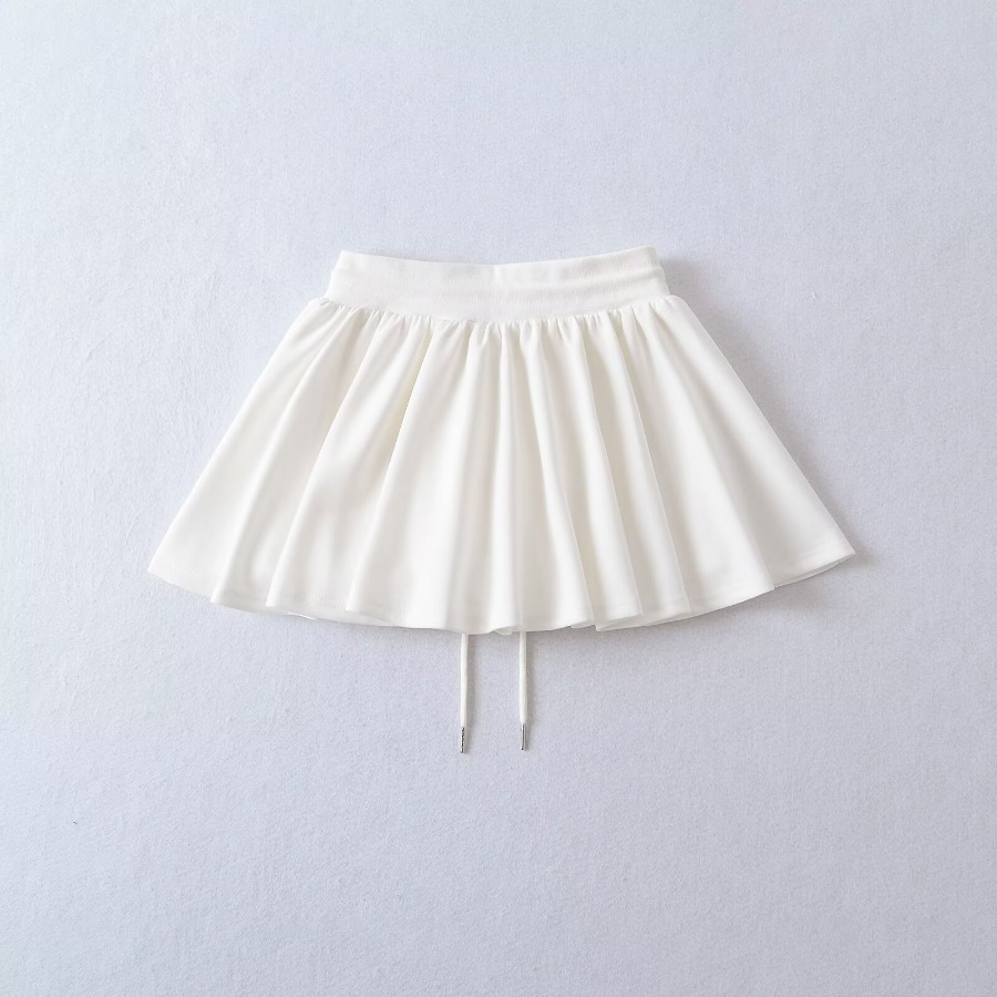 여성을위한 미국 유행 캐주얼 솔리드 컬러 드로스트링 스커트 2025 여름 새로운 노출 방지 울트라 짧은 미니 스커트 도매스토어 가기
