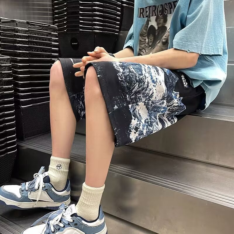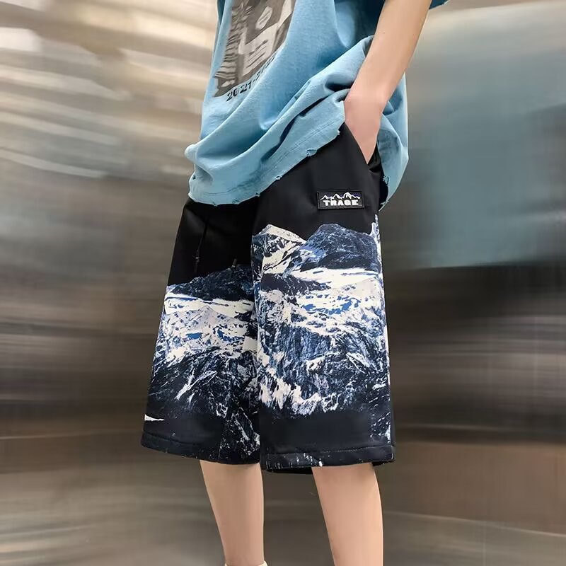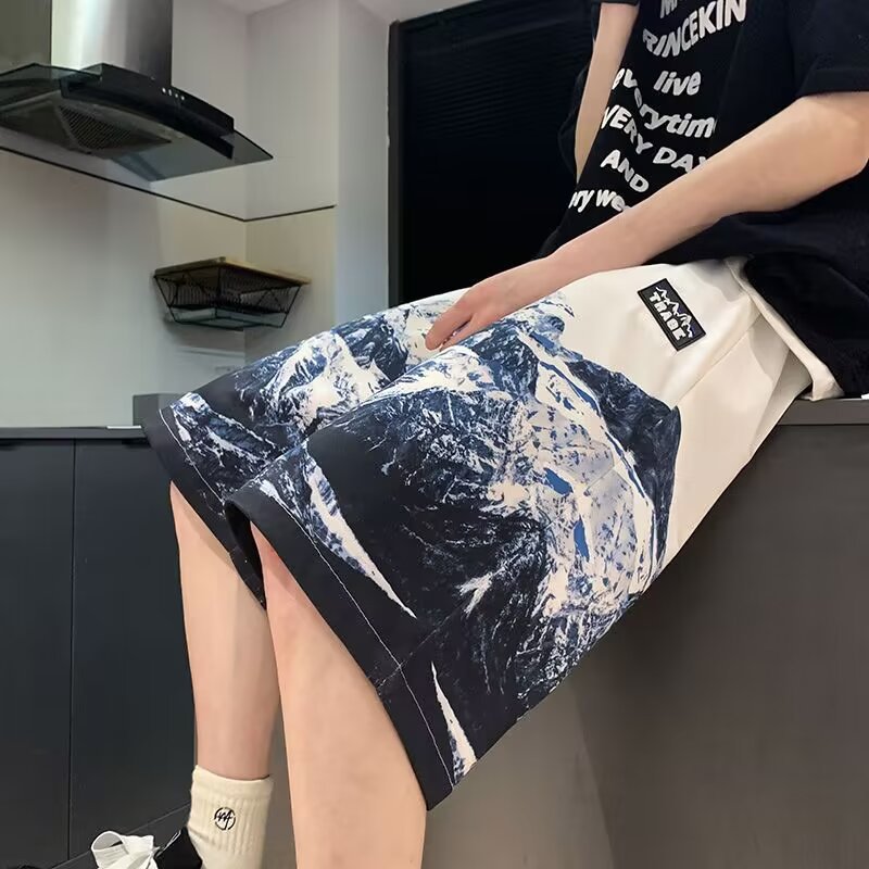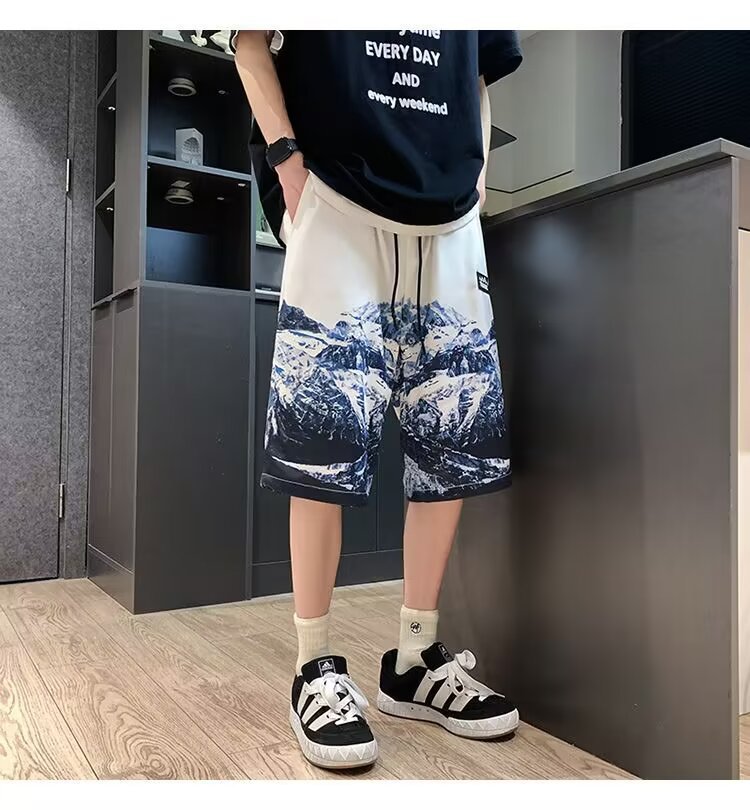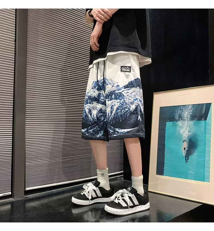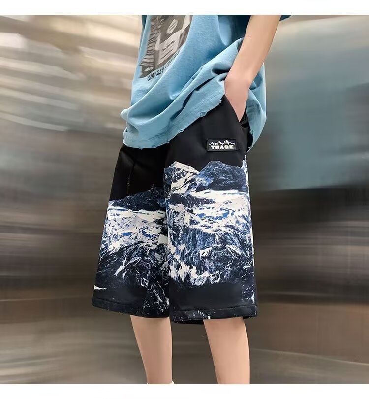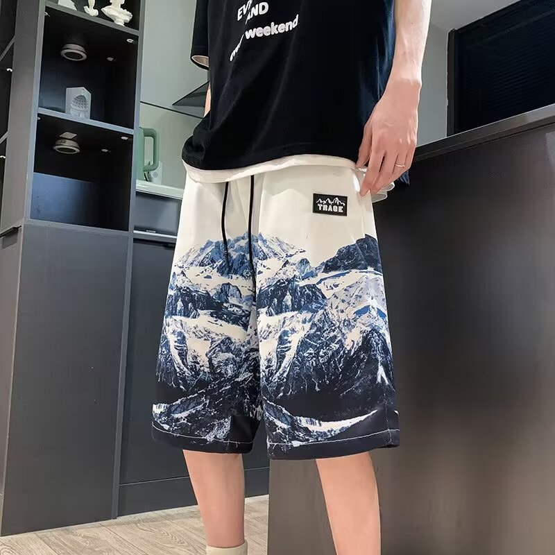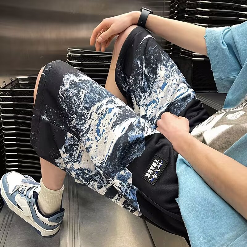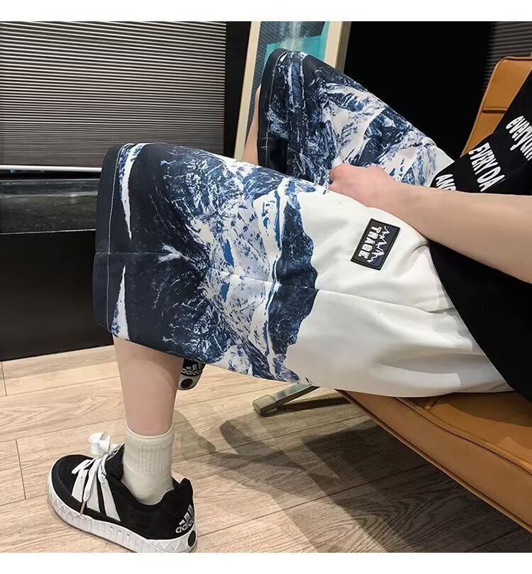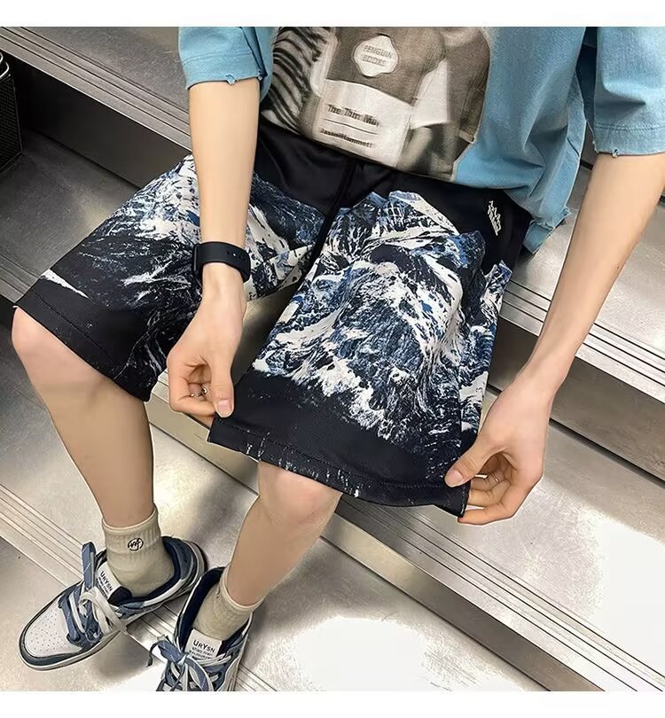 반바지 남성 여름 꽃무늬 바지 비치 팬츠 얇고 속건성 해변 휴가 캐주얼 5부 바지스토어 가기