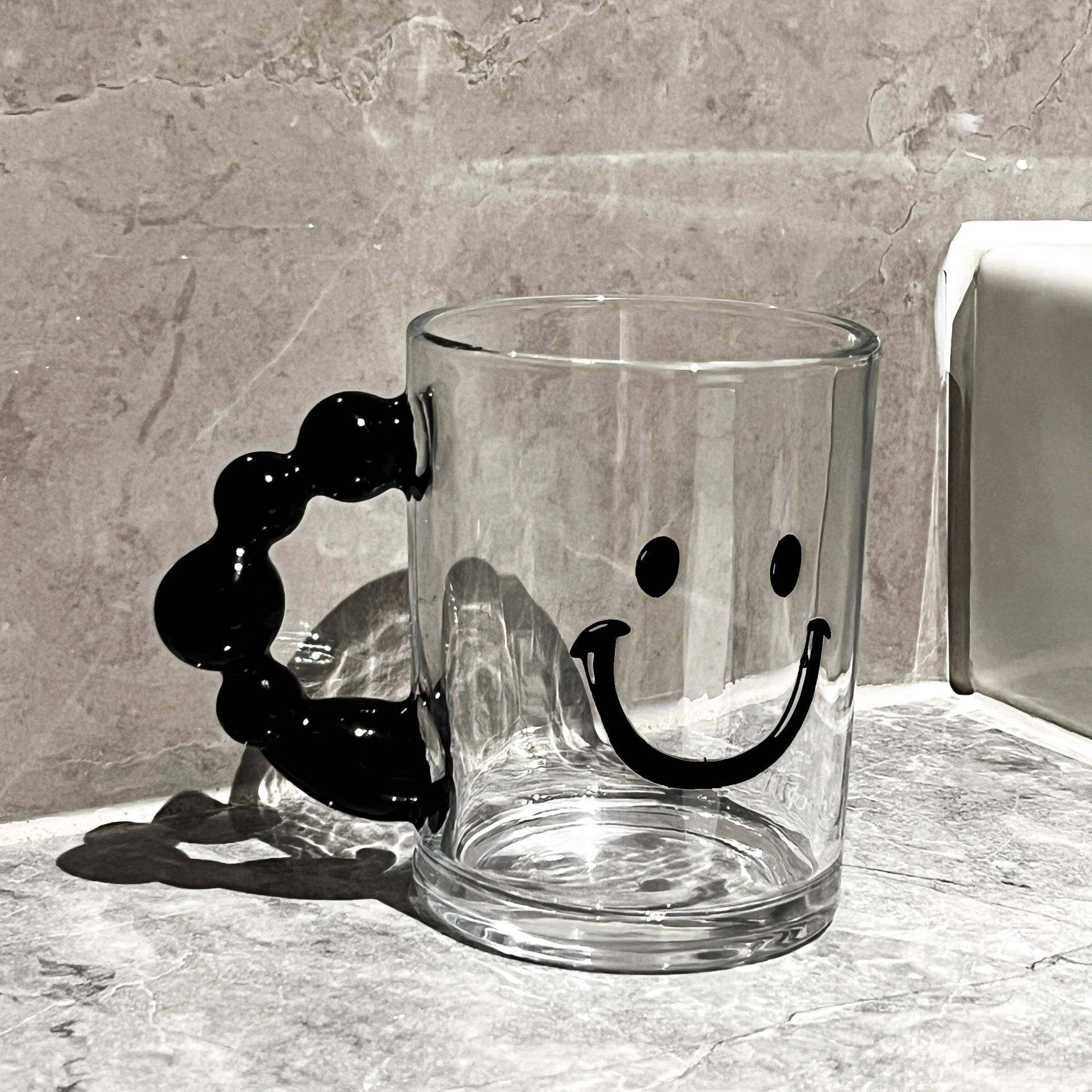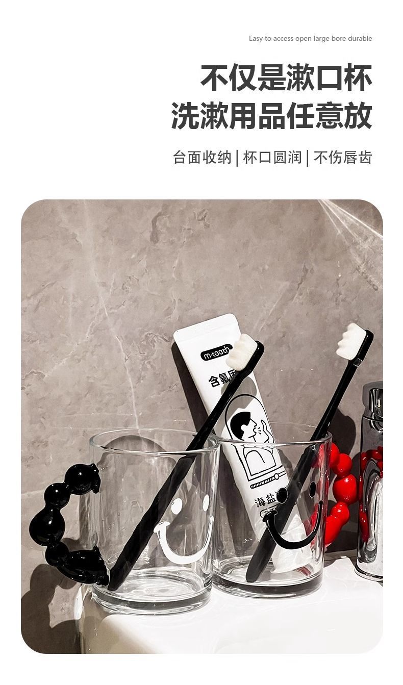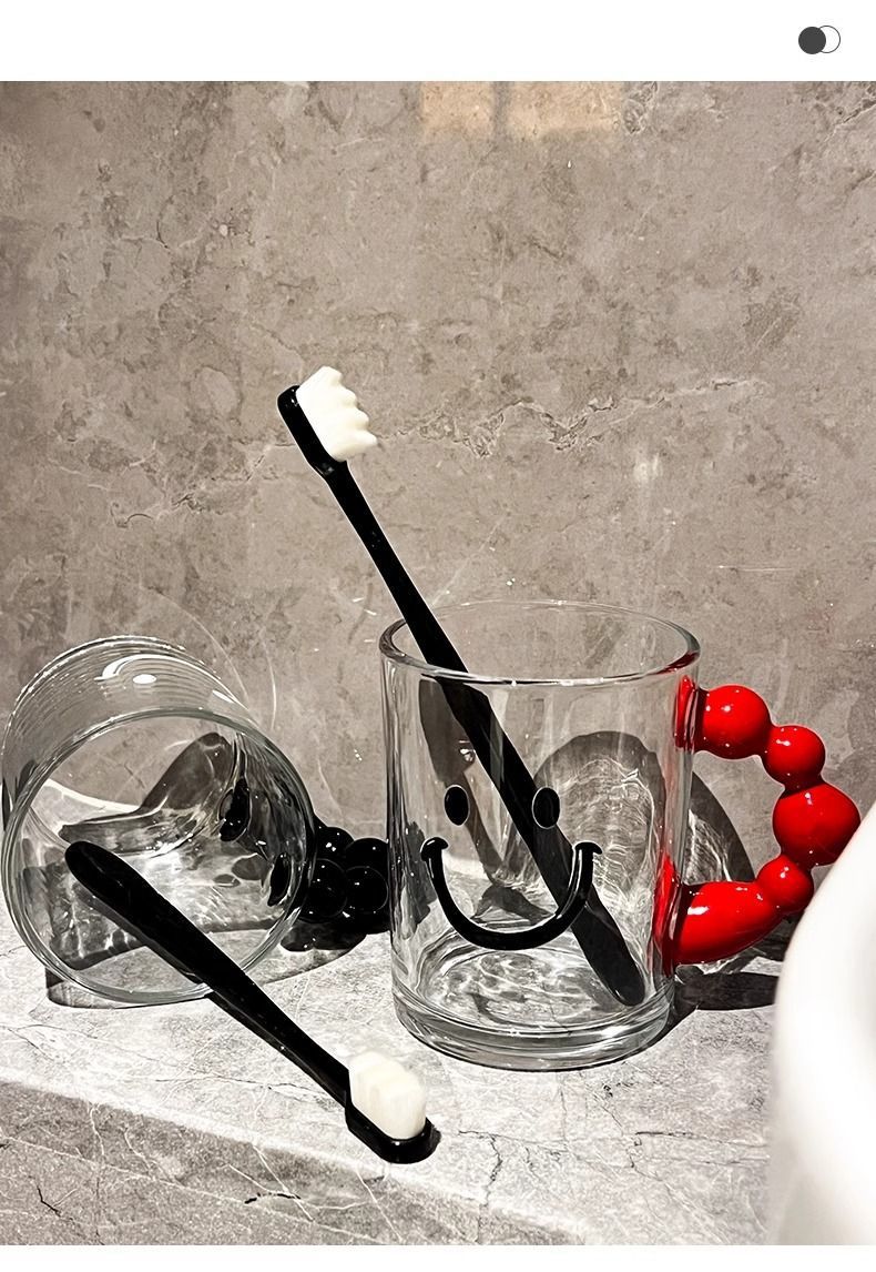 • 검은 구슬 손잡이가 달린 웃는 구강 청결제 컵