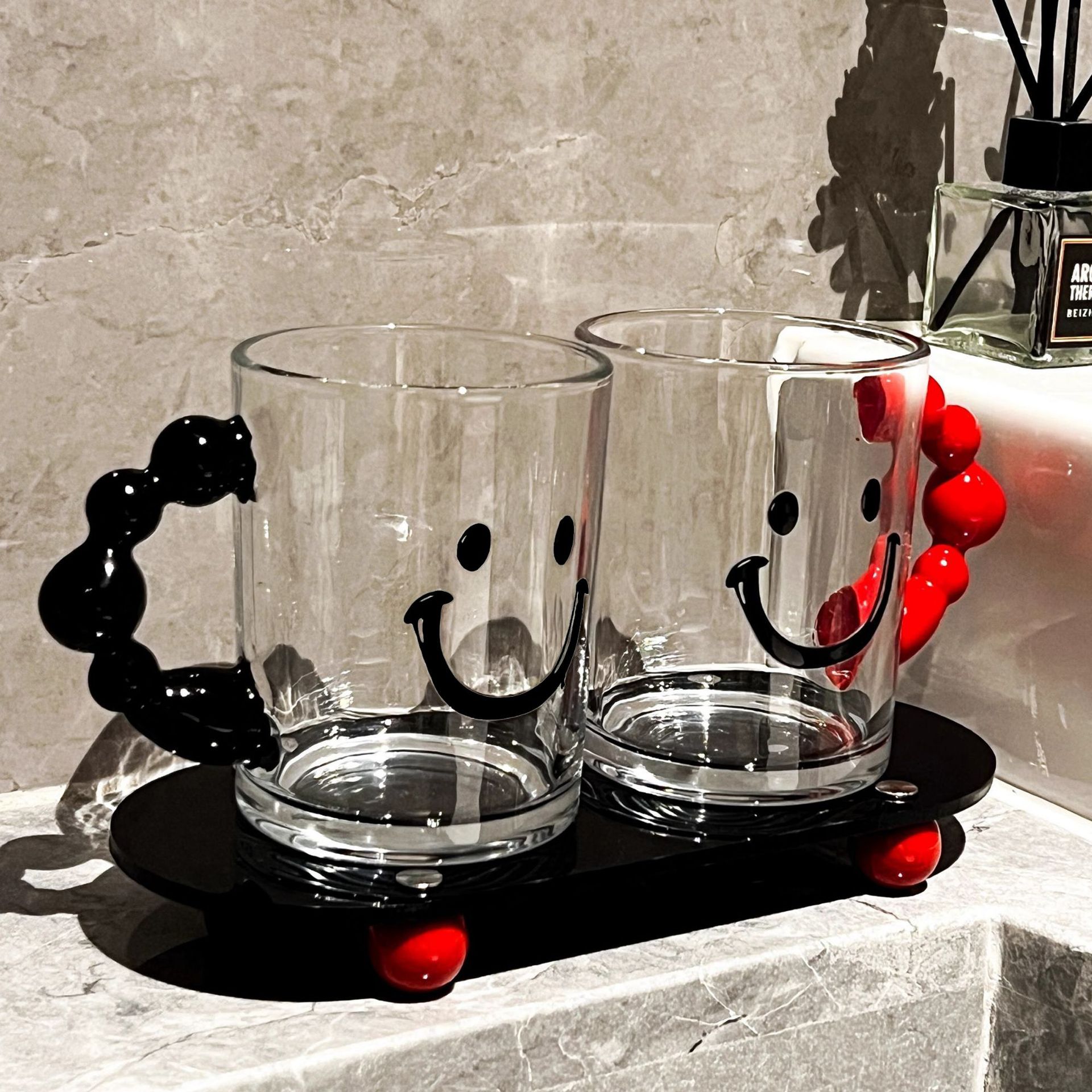 • 귀여운 커플의 검정색과 빨간색 컵 + 검정색 곰팡이 방지 코스터